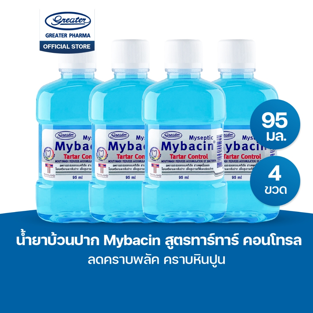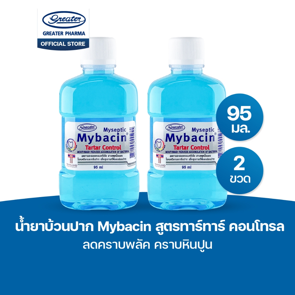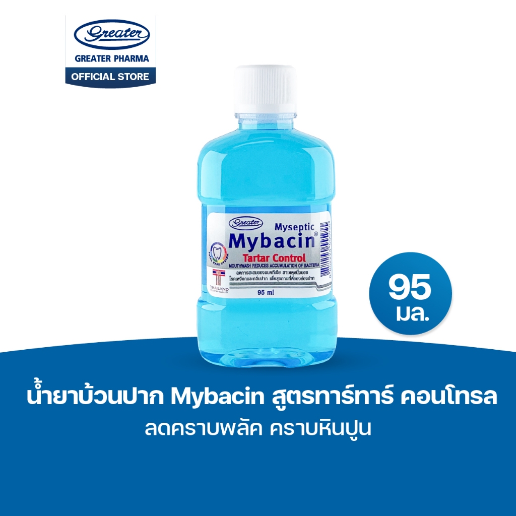 น้ำยาบ้วนปาก สูตรทาร์ทาร์ คอนโทรล ลดคราบพลัค คราบหินปูน ขนาด95 มล. MyBacin