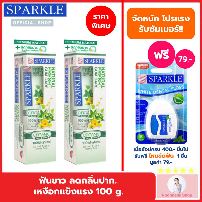 (แพ็ค 2) SPARKLE ยาสีฟัน ออร์แกนิค ลดกลิ่นปาก..เหงือกแข็งแรง 100 กรัม สูตร Natural Fresh & Gum Care SK0290 สปาร์คเคิล