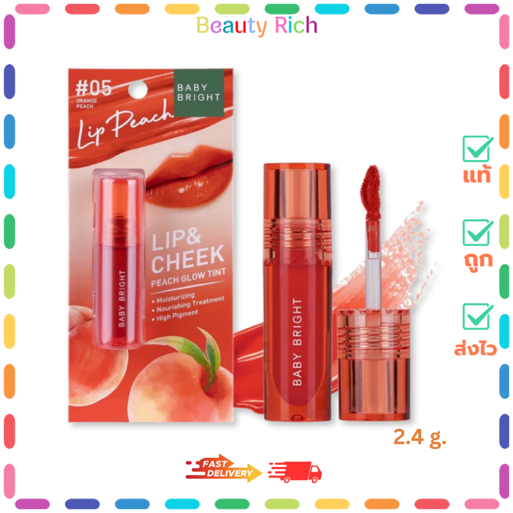 (1 แท่ง) Baby Bright ลิปแอนด์ชีคพีชโกลว์ทินท์ #05 ออเร้นจ์พีช (2.4 g.)