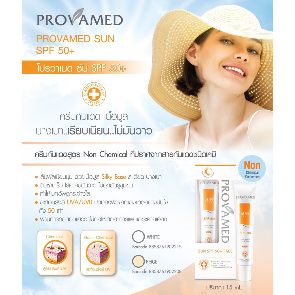 Provamed Sun Face SPF 50+ PA ++++ 30g : สีขาว // สีเนื้อ Mousse & Matte Sunscreen