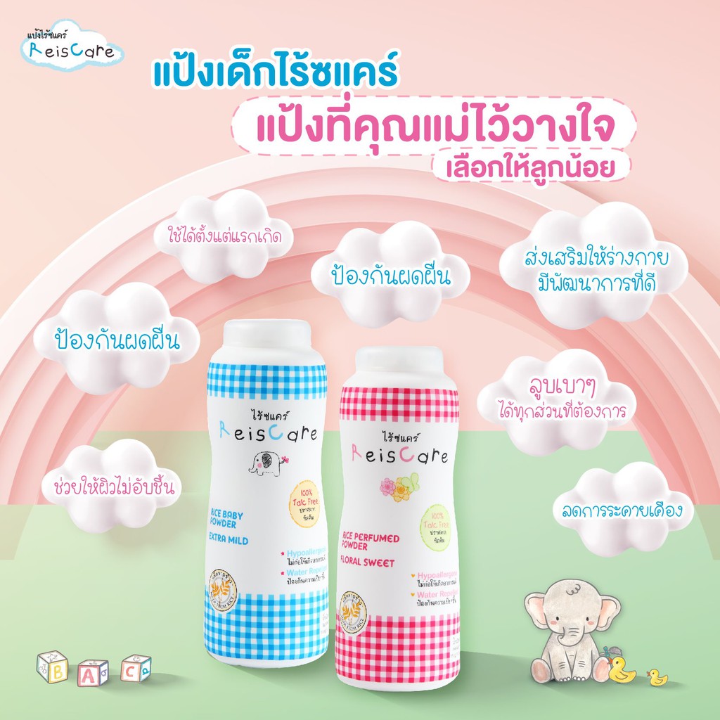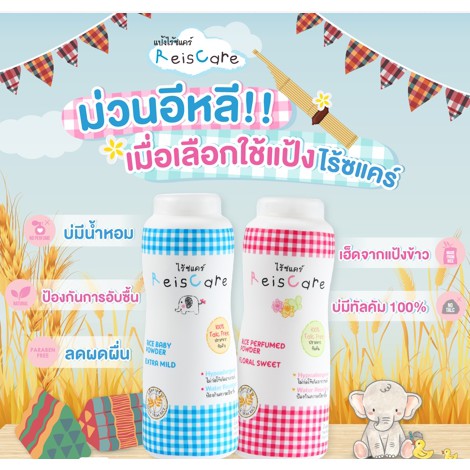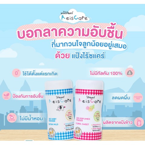 แป้งทาตัวไรซ์แคร์ (ReisCare) มี2สี สีฟ้า และ สีชมพู 40g/130g แบบกระปุก 130g