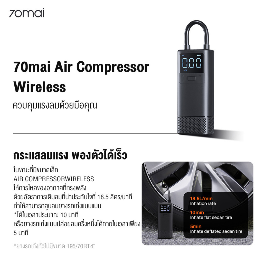 70mai Wireless Air pump Compressor Lite TP05 เครื่องปั๊มลมไฟฟ้า เครื่องปั๊มลมยางแบบพกพา ประกันศูนย์ 70mai แท้ 1 ปี