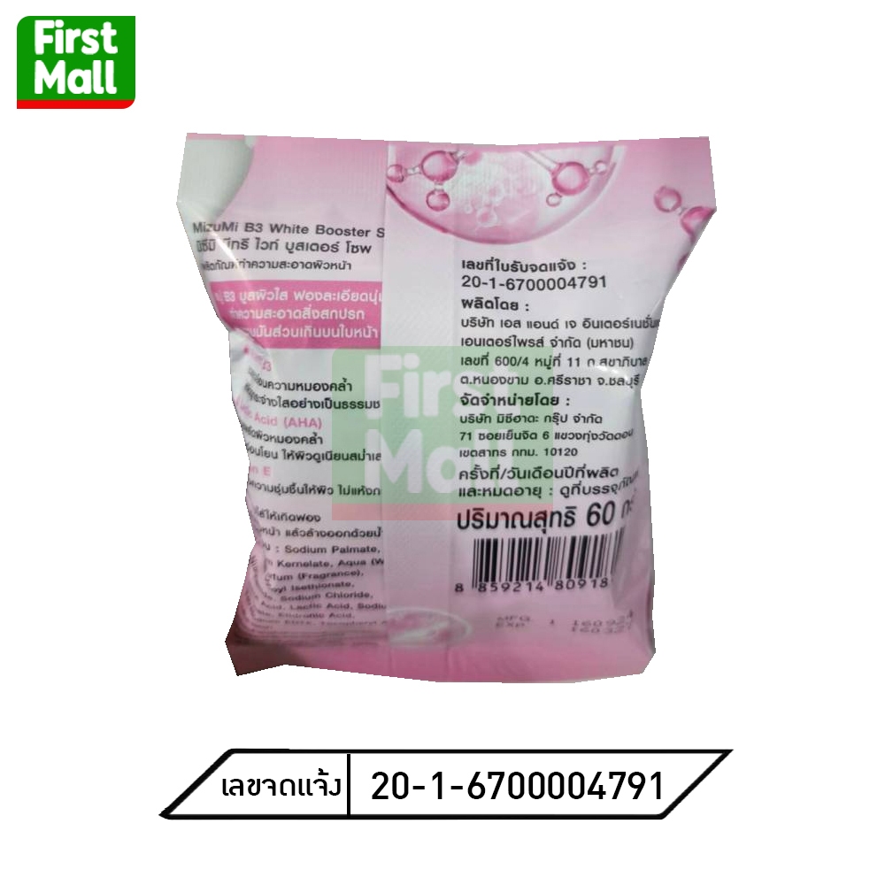Mizumi B3 soap white booster " สบู่ก้อน มิซึมิ " ( 1 ก้อน 60 กรัม )