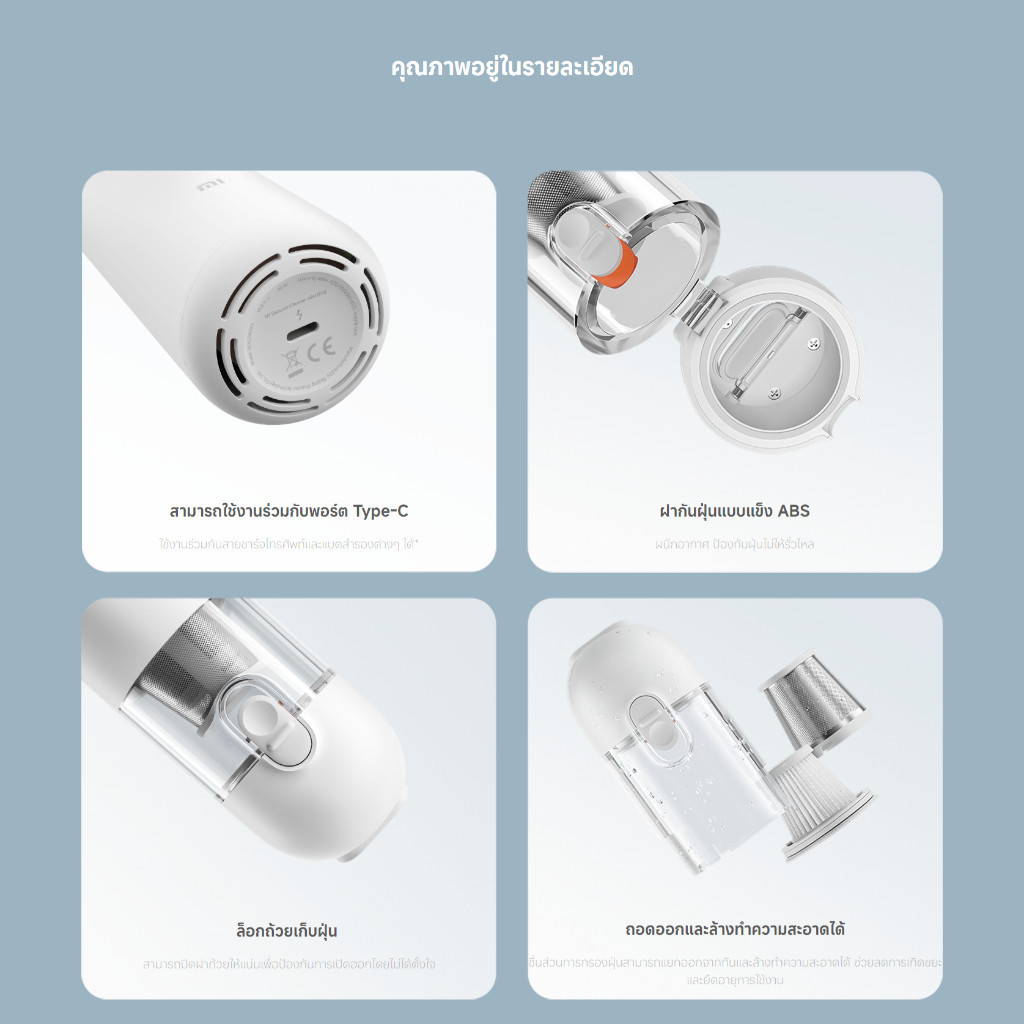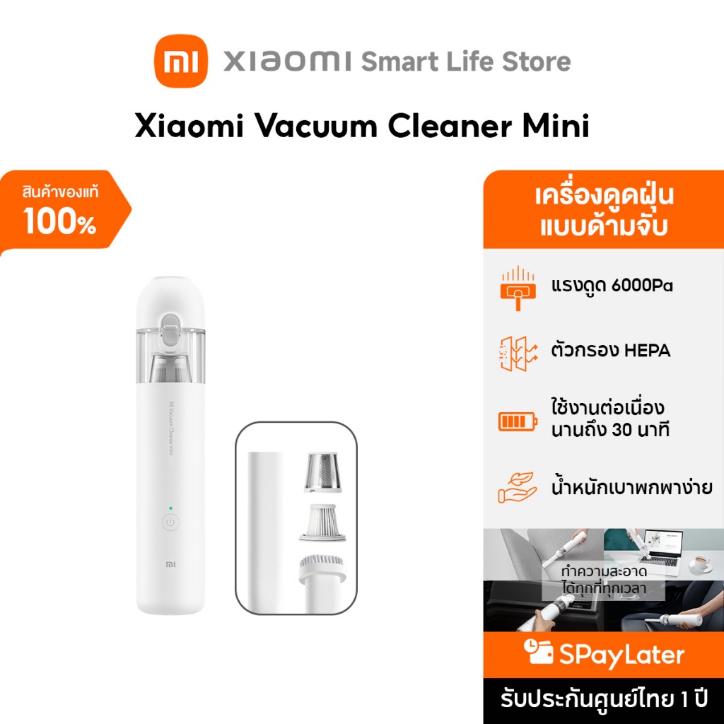 Xiaomi Mi Vacuum Cleaner Mini ที ่ดูดฝุ่น I เครื่องดูดฝุ่นไร้สายในรถ I 6,000Pa การดูด I แบตเตอรี่ 30 นาที I ขนาดพกพา