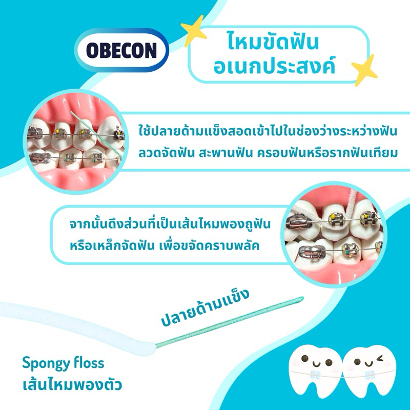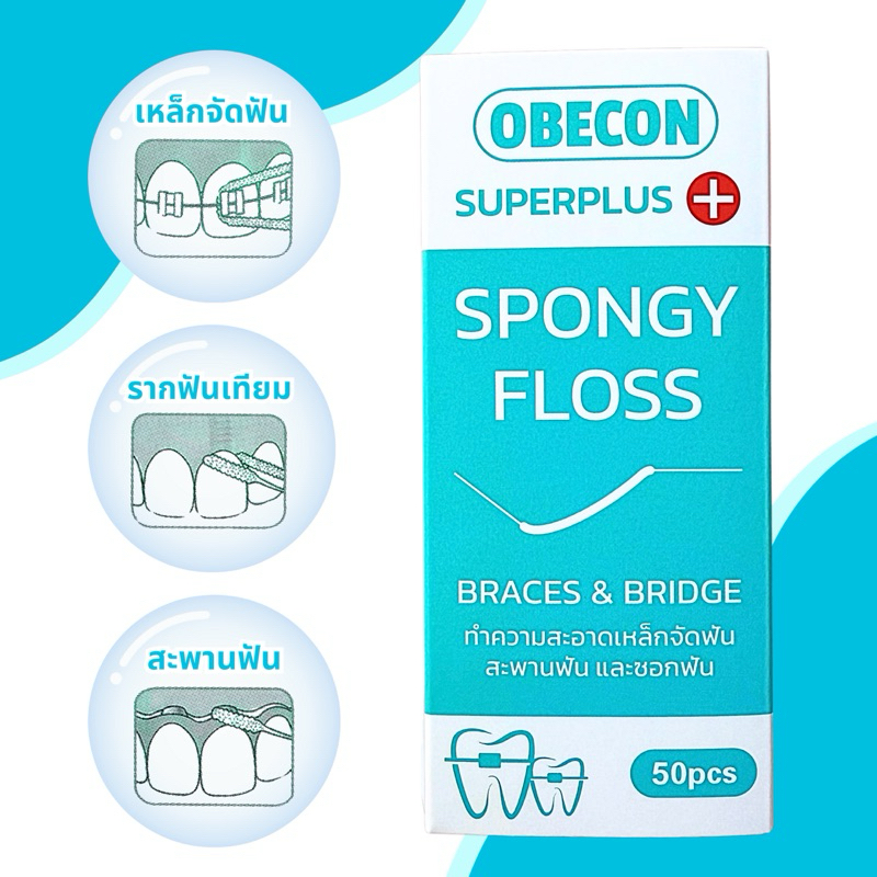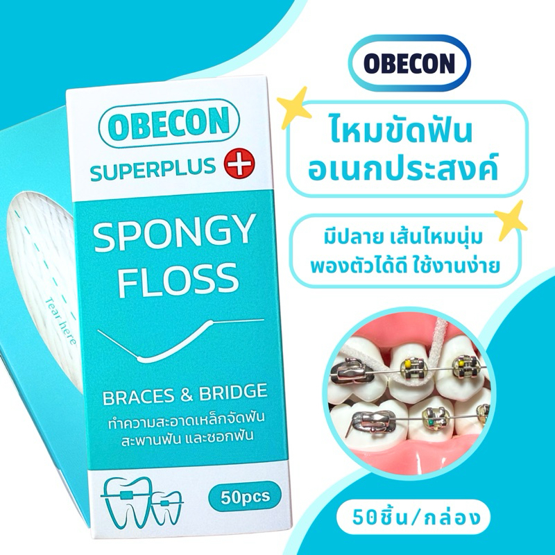 OBECON Superplus Floss ซูปเปอร์พลัสฟลอส ไหมขัดฟันสำหรับคนจัดฟัน สะพานฟัน รากฟันเทียม 1 กล่อง 50 ชิ้น