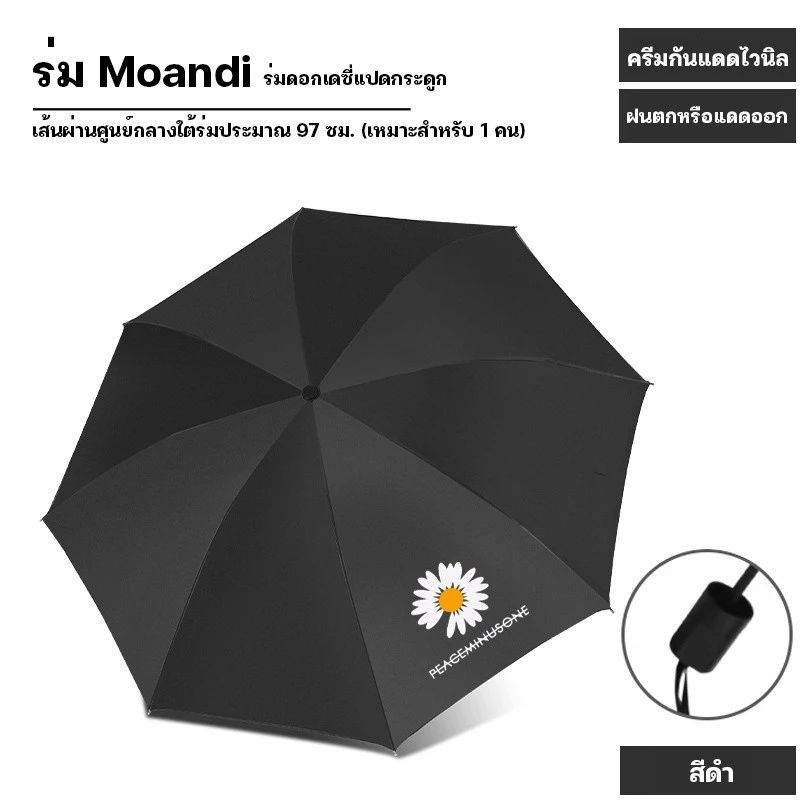 ร่มแคปซูล 5 ตอน รุ่นเดซี่น้อย ร่มพับพกง่าย กันแดดแรง กันฝนได้ดี UV Protection สีดำ 🌤️ ร่มกันแดด ร่มพับ