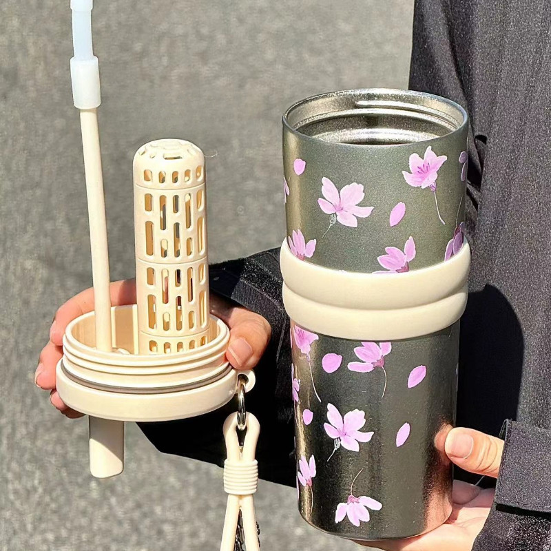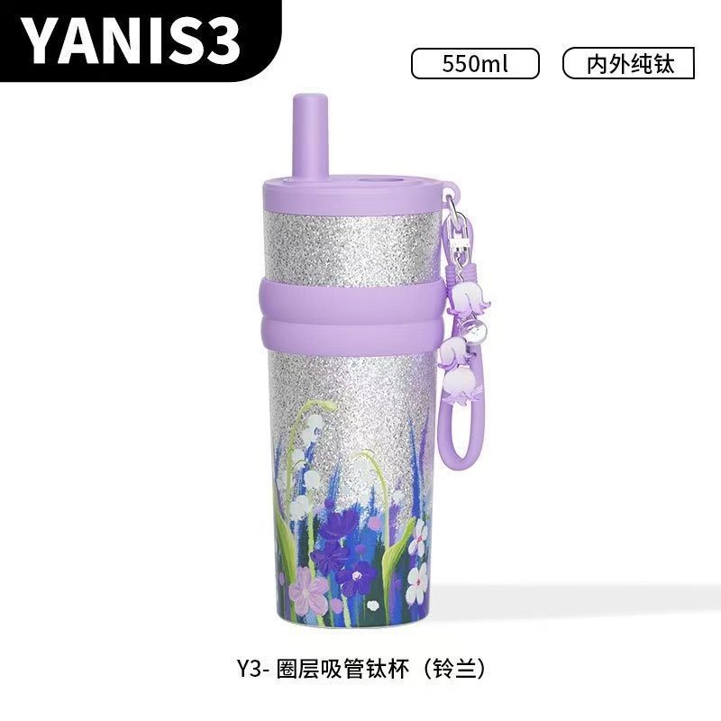 【LUCKY】YANIS3 ไทเทเนียมบริสุทธิ์สองชั้นฉนวนกันความร้อนสูญญากาศถ้วยเย็นเก็บถ้วยกาแฟด้วยฟางหดที่มาพร้อมกับถ้วย550มล