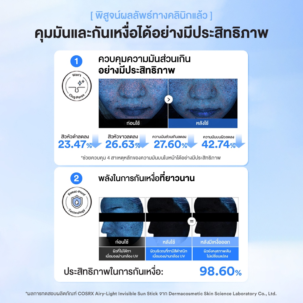 COSRX Airy-Light Invisible Sun Stick SPF50+ PA++++ 19g แอร์รี่-ไลท์ อินวิซิเบิล ซัน สติ๊ก เอสพีเอฟ50+ พีเอ++++