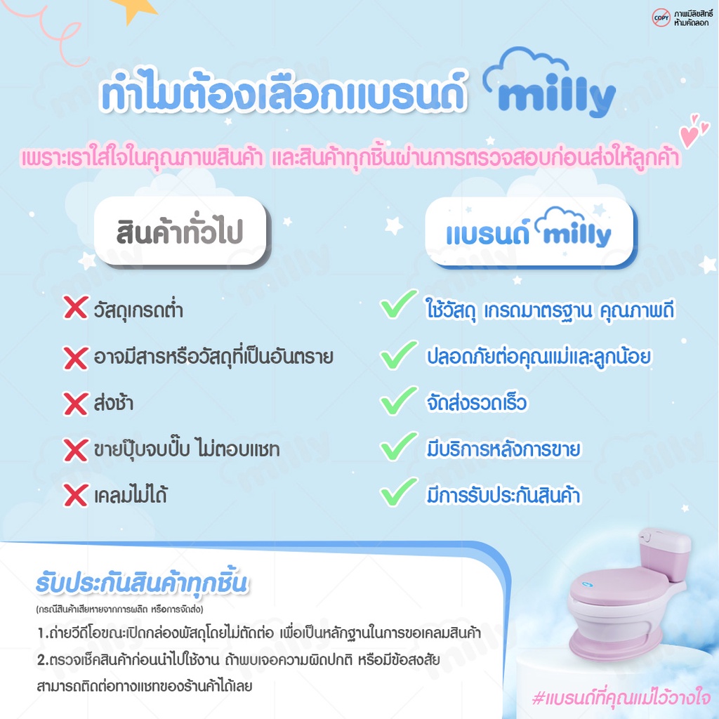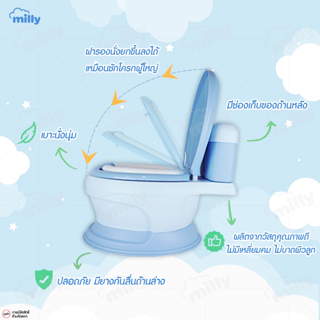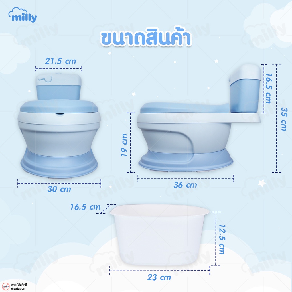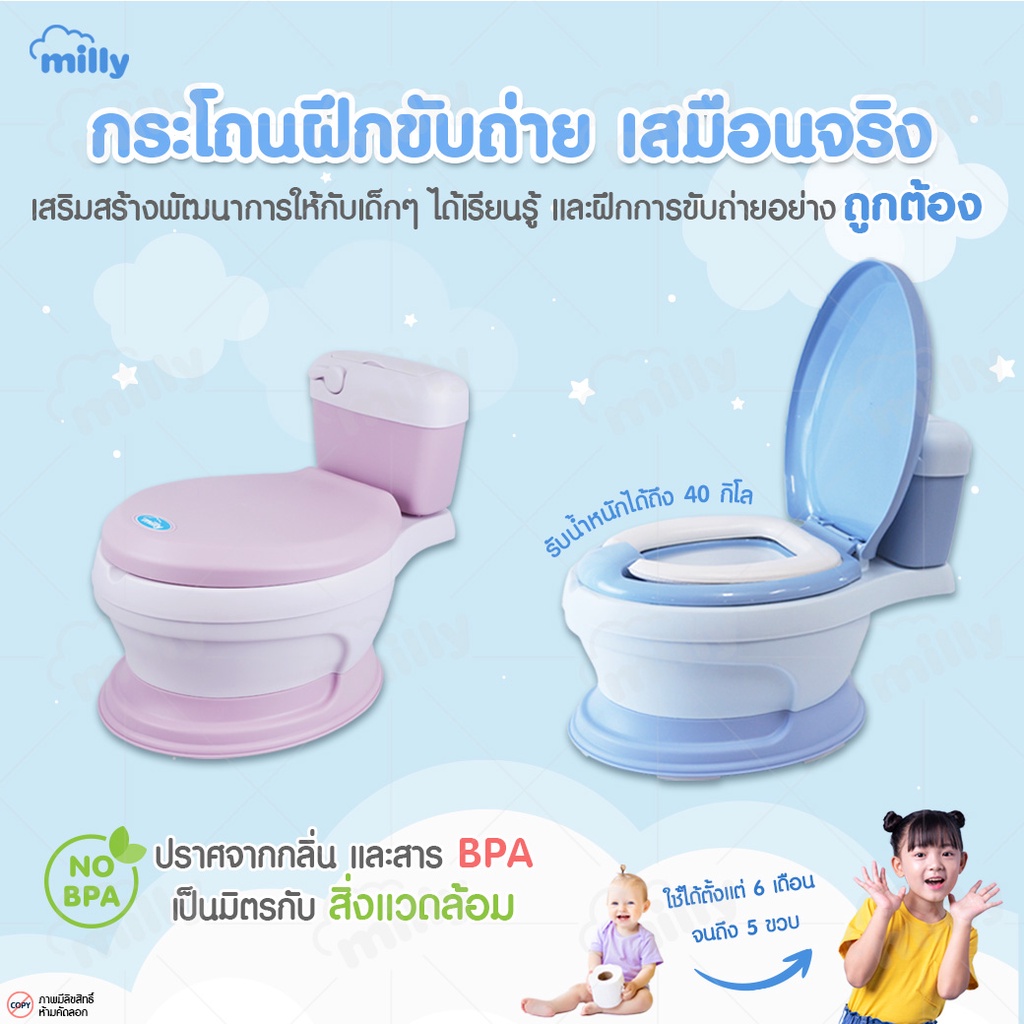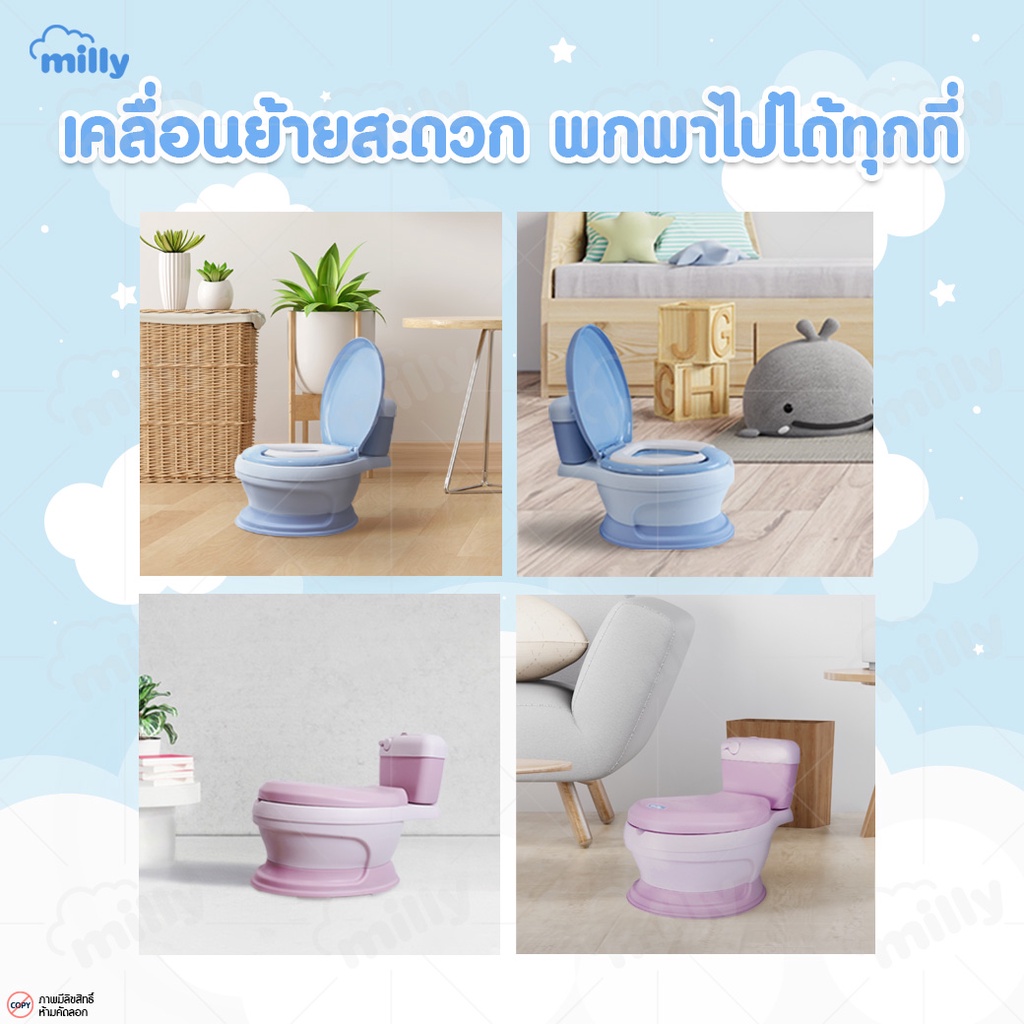 Milly กระโถน จำลองรูปทรงชักโครก สุขา ห้องน้ำคลื่อนที่ สำหรับเด็กฝึกขับถ่ายเอง Potty Trainer