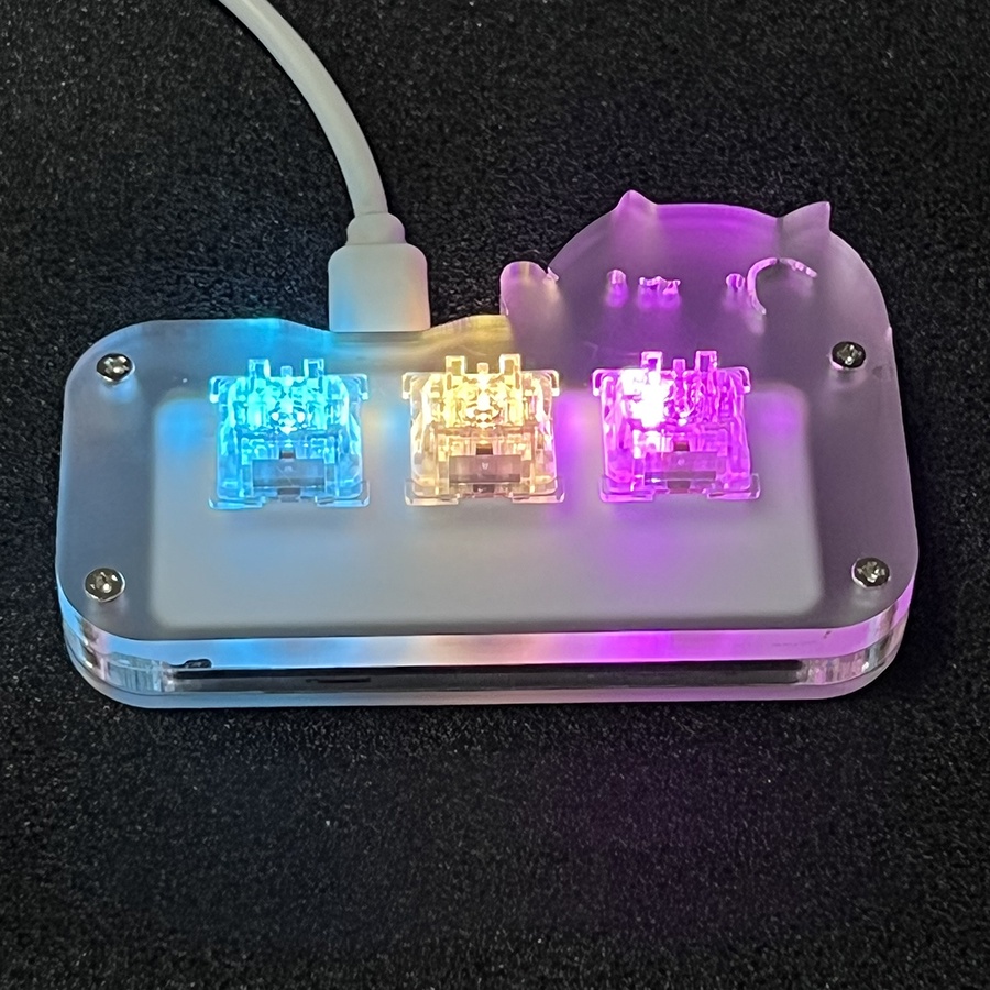 Mini Cute Cat Keyboard 3 Key Crystal Switch with Transparent Keycap Acrylic RGB Programmable Macro Keyboard Mechanical G