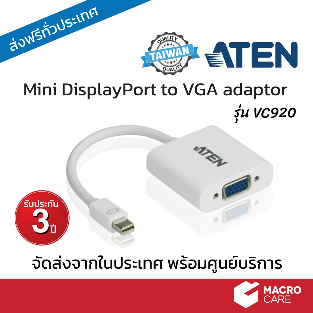Mini Display Port to VGA อุปกรณ์แปลง DisplayPort เป็น VGA รุ่น VC920 ยี่ห้อ ATEN ประกัน 3 ปี