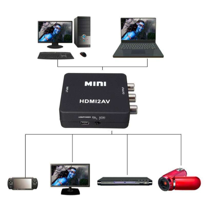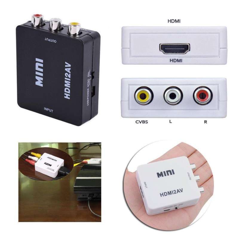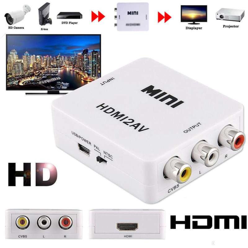 Mini HD 1080P HDTV 2AV Video Converter Box HDTV to RCA AV/CVSB L/R Video Support NTSC PAL Output HDMI TO AV Adapter