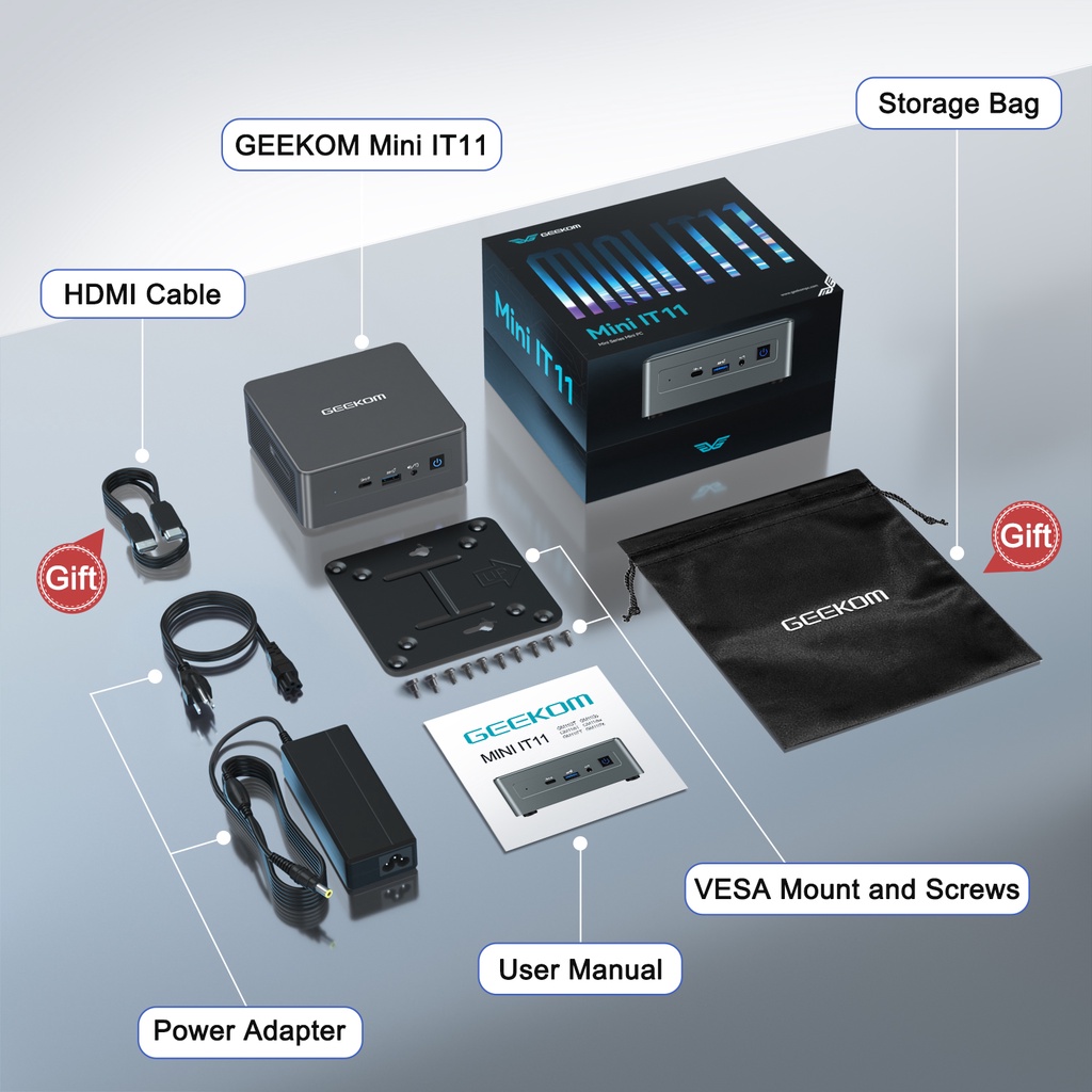 Mini PC, GEEKOM Mini IT11, Intel Core i7-11390H (4 Cores 8 Thread, Up to 4.5 Ghz) 16GB DDR4 512G M.2 SSD, Mini Desktop Computer 8K HDMI | Type-C | USB4.0 | WiFi 6 | BT5.2 | Mini Computer