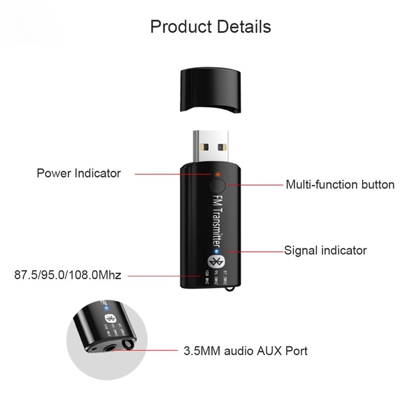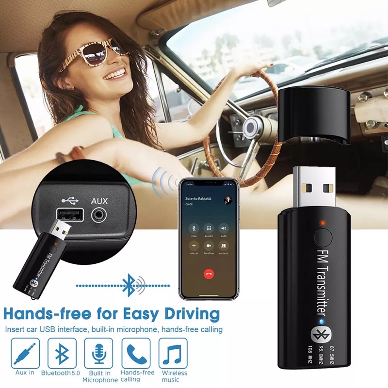 Mini USB FM Transmitter Wireless Car Kit Receiver Stereo Muic Bluetooth 5.0 Adapter For Car With Microphone 3.5 AUX Jack