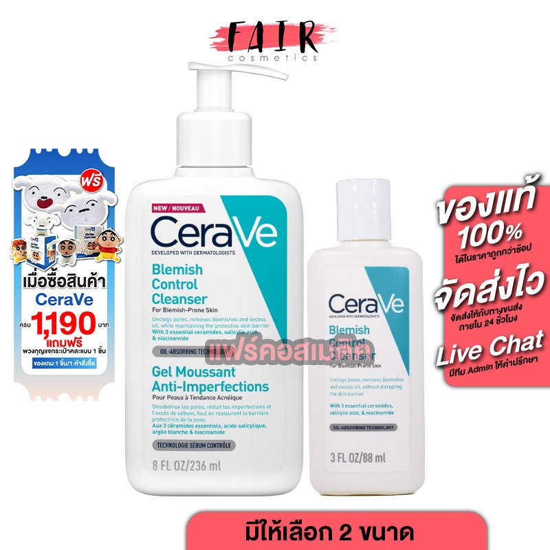 CeraVe Blemish Control Cleanser เซราวี เบลมมิช คอนโทรล คลีนเซอร์ [มีให้เลือก 2ขนาด]