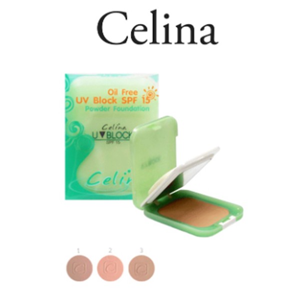 (ตลับเขียว) Celina UV Block Powder Foundation เซลีน่า แป้งพัส แป้งพริตตี้ ตลับเขียว ตลับจริง รีฟิล