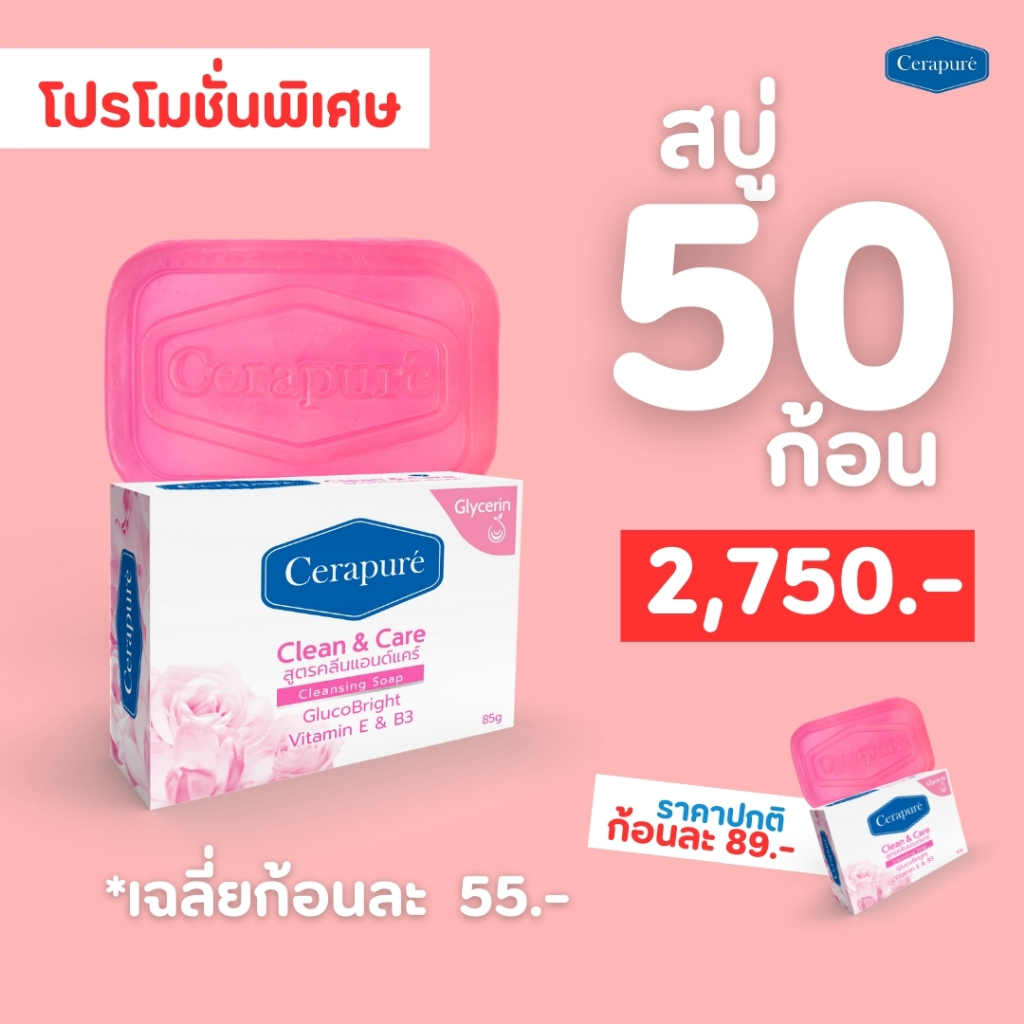 Cerapure (เซราเพียวเร่) โปร 50 ก้อน สบู่อาบน้ำ ลดสิว ระงับกลิ่นกาย กลีเซอรีน (ฟ้า,ชมพู,เหลือง)