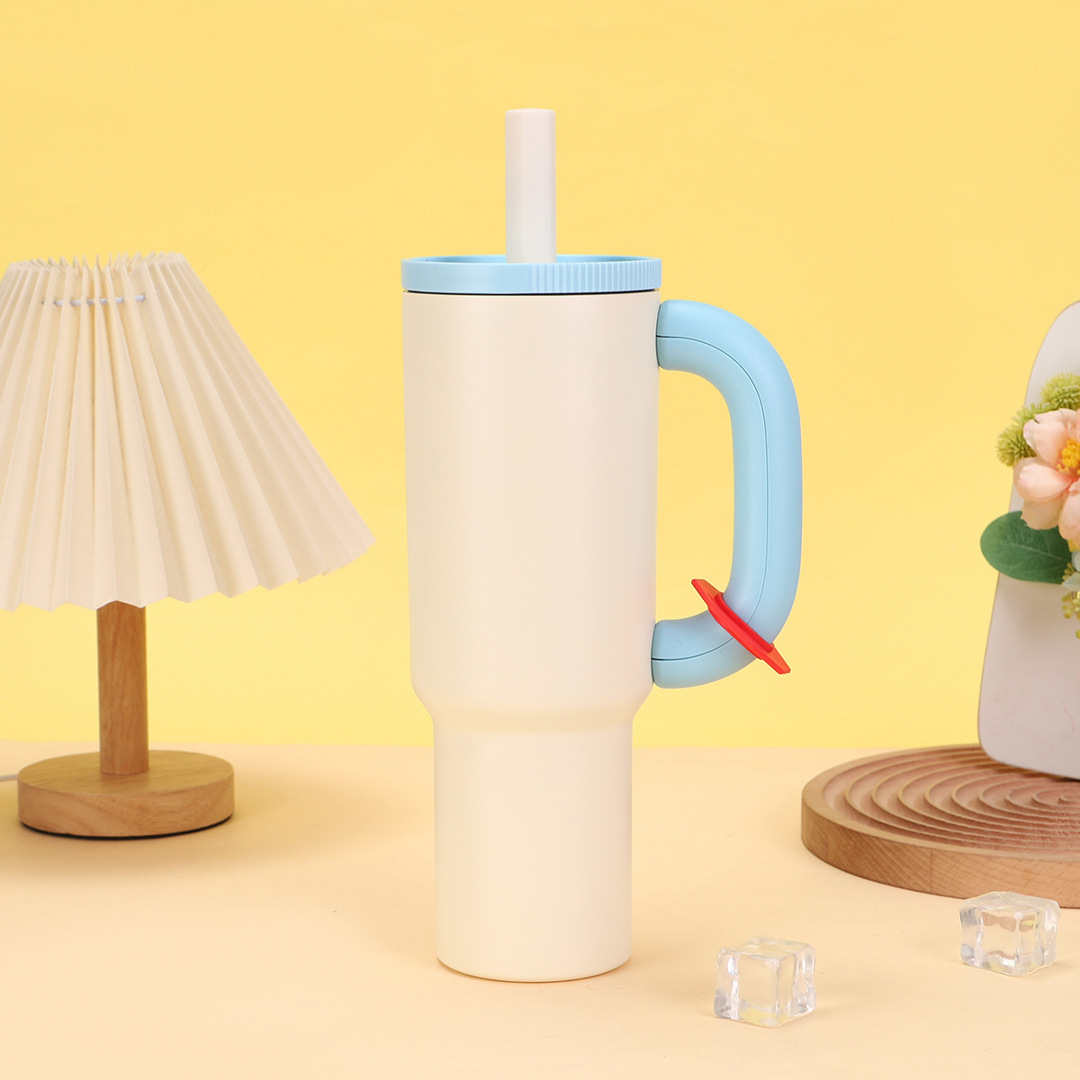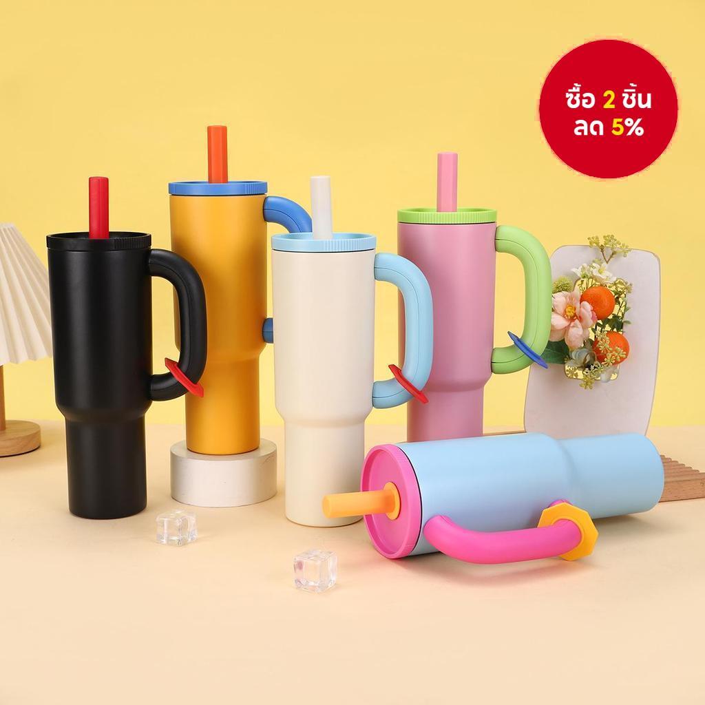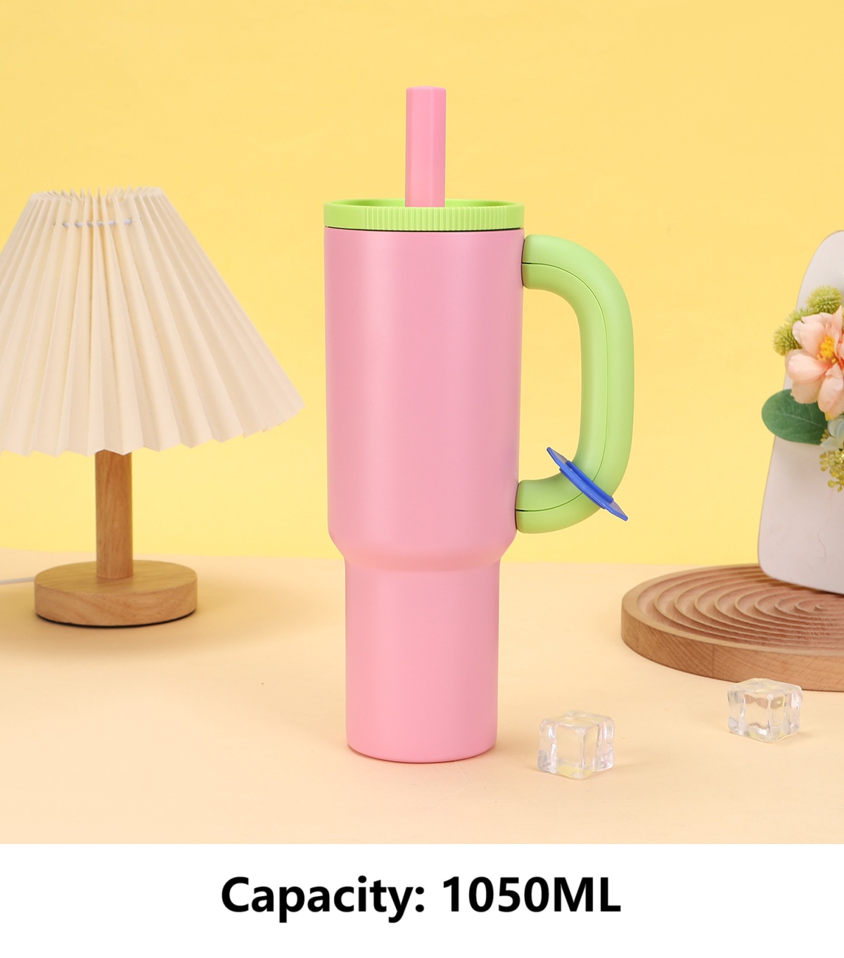 แก้วน้ําฉนวน Dopamine ป้องกันการรั่วพร้อมที่จับ 1050ML 304 ถ้วยสแตนเลสสําหรับกาแฟเย็นมัทฉะและตั้งแคมป์ 1 ชิ้น