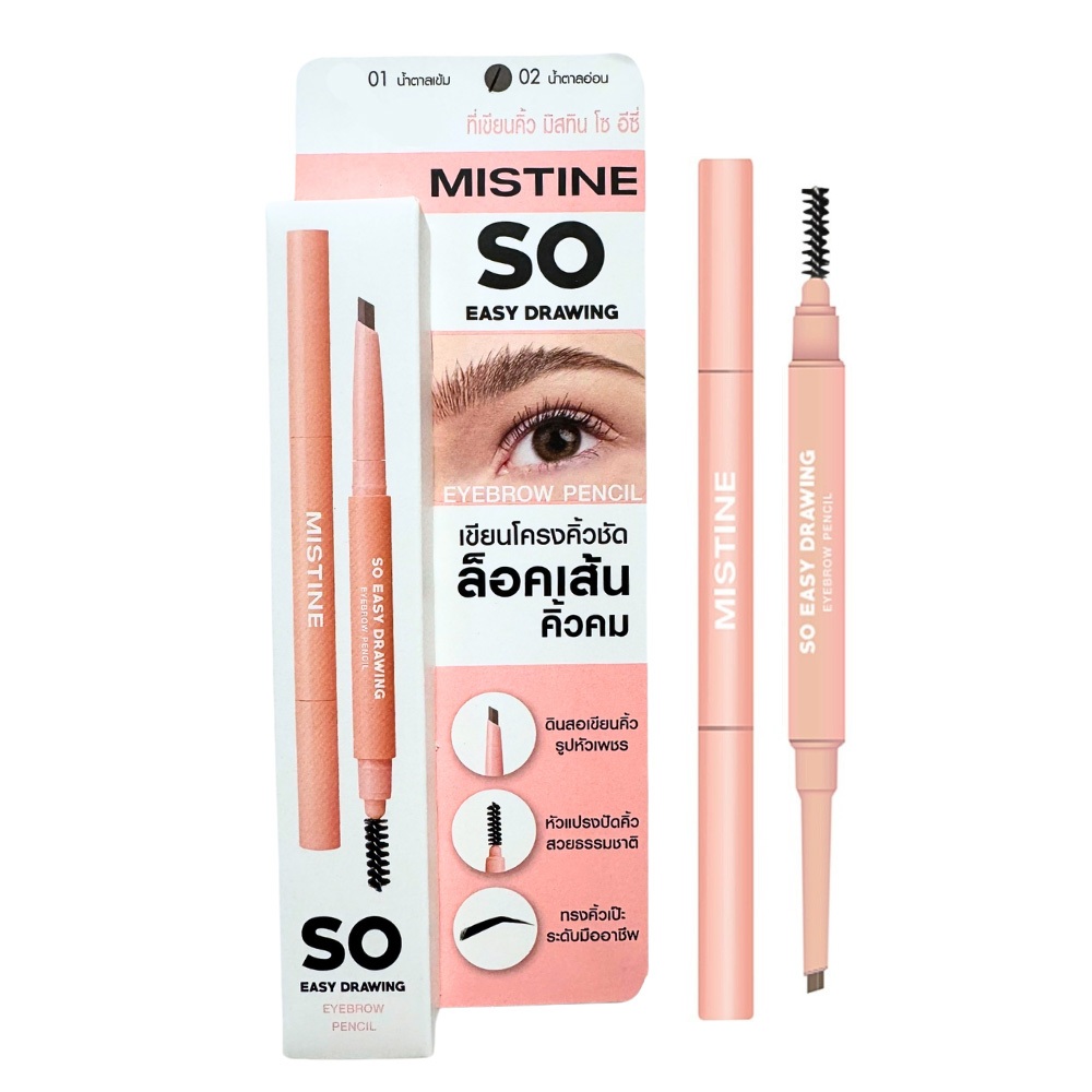 Mistine So Easy Drawing Eyebrow Pencil 0.27g (#1 น้ำตาลเข้ม) มิสทีน ดินสอเขียนคิ้ว