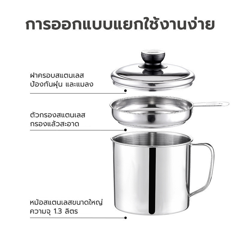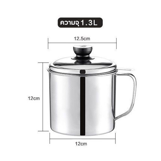 หม้อกรองน้ำมัน 1.3L ทนต่อความร้อ พร้อมตะแกรงกรอง มีฝาปิดและที่จับ