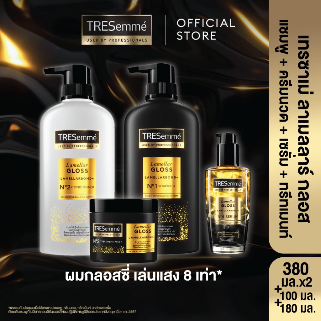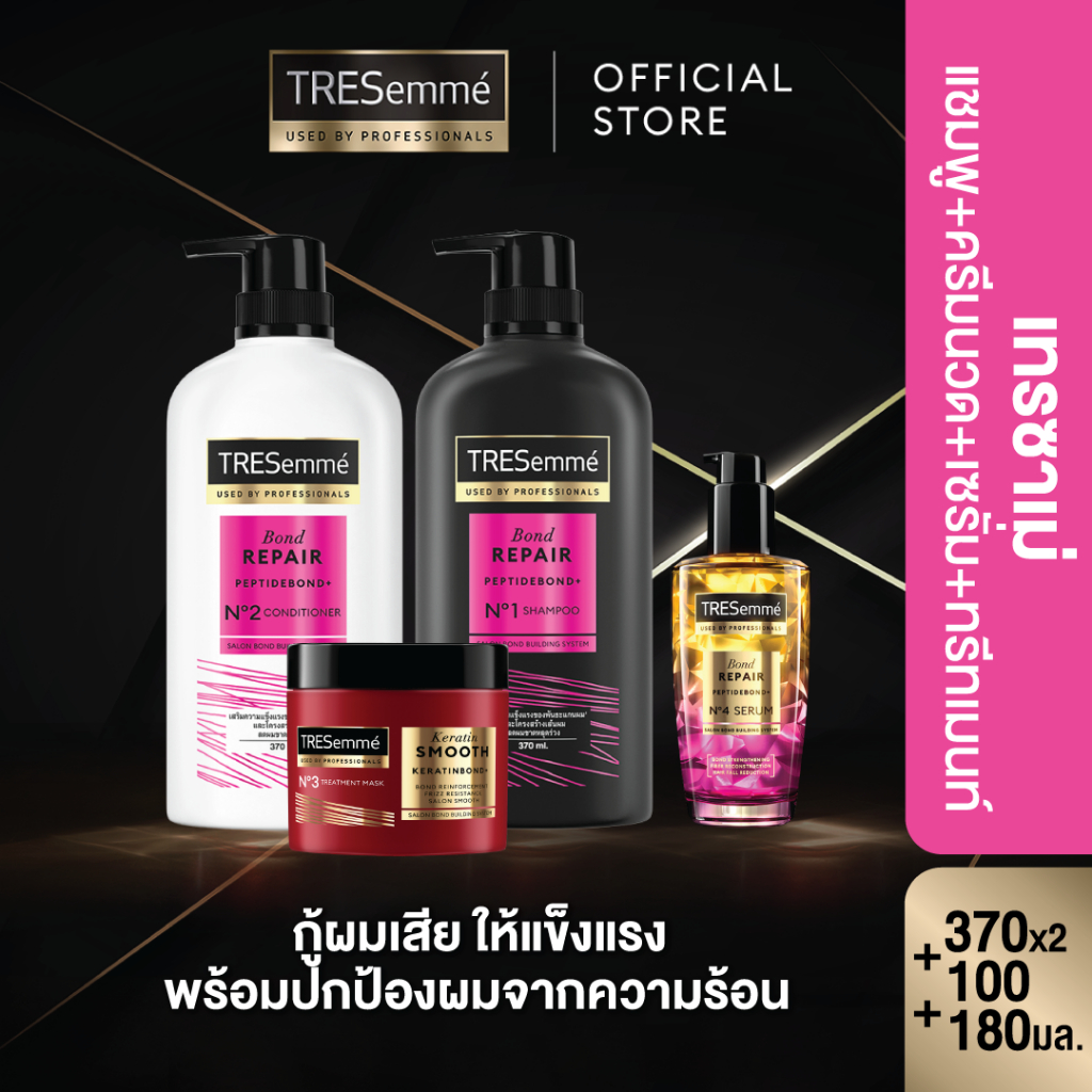 [เซตดูแล4ขั้นตอน] เทรซาเม่ แชมพู+ครีมนวด 370 มล + เซรั่ม 100 มล + มาส์ก 180 มล. TRESemme Shampoo+Conditioner+Serum+Mask