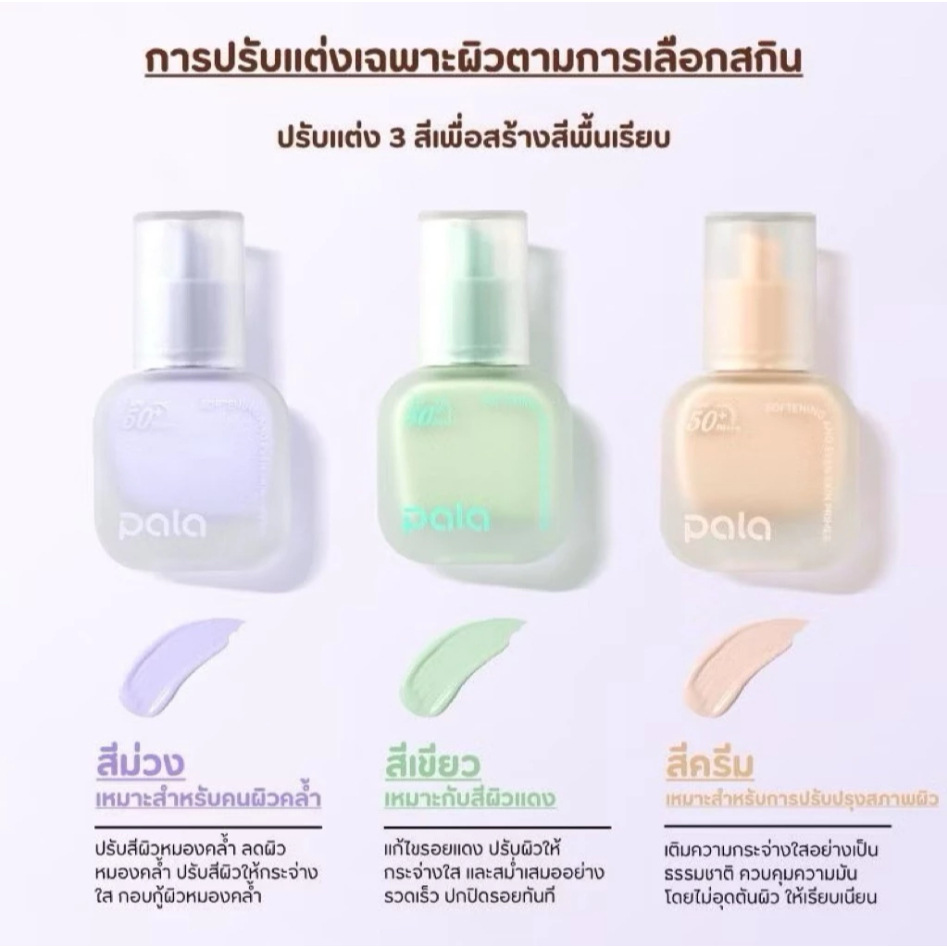PALA ไพรเมอร์ SOFTENING AND EVEN SKIN PRIMER SPF50+ PA+++ ปรับผิวเนียน เบลอรูขุมขน เมคอัพเบส โทนอัพ 30ml มี4สี