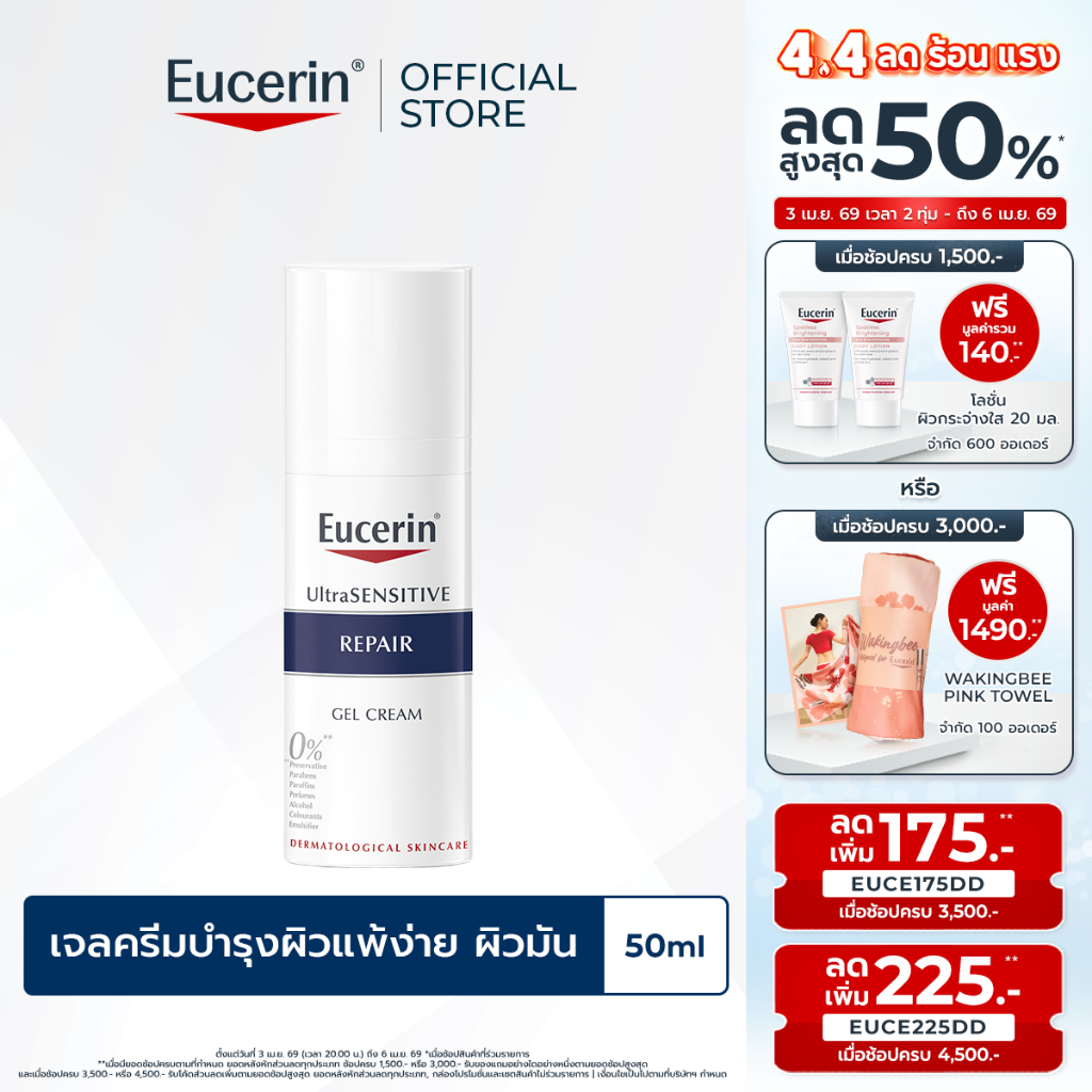 Eucerin UltraSENSITIVE REPAIR GEL CREAM 50 ML ยูเซอริน ครีมบำรุงผิวสำหรับผิวแพ้ง่าย ลดผิวแห้ง แดง ระคาย มอยเจอร์ไรเซอร์