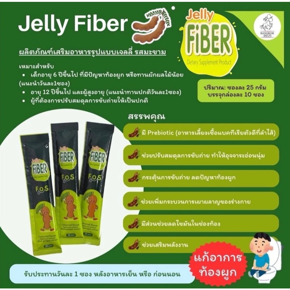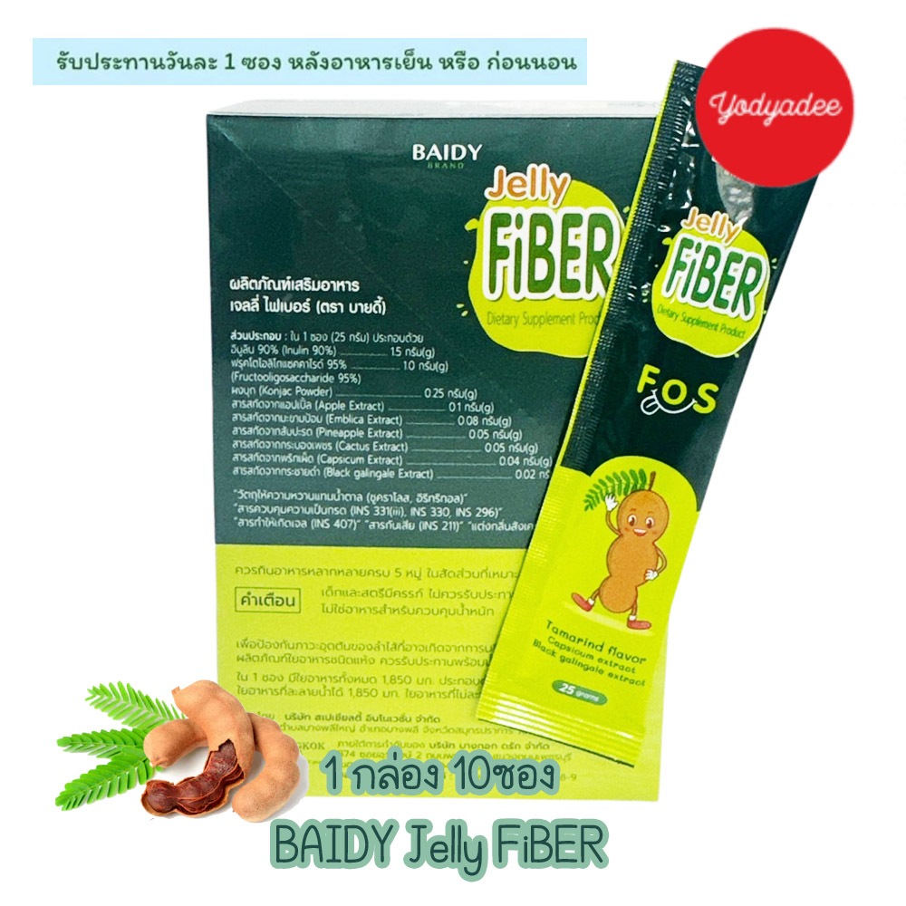 Baidy เจลลี่ ไฟเบอร์ รสมะขาม Jelly Fiber กล่อง10ซอง 83276 EXP23/04/2027