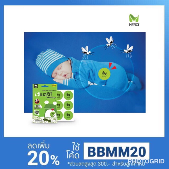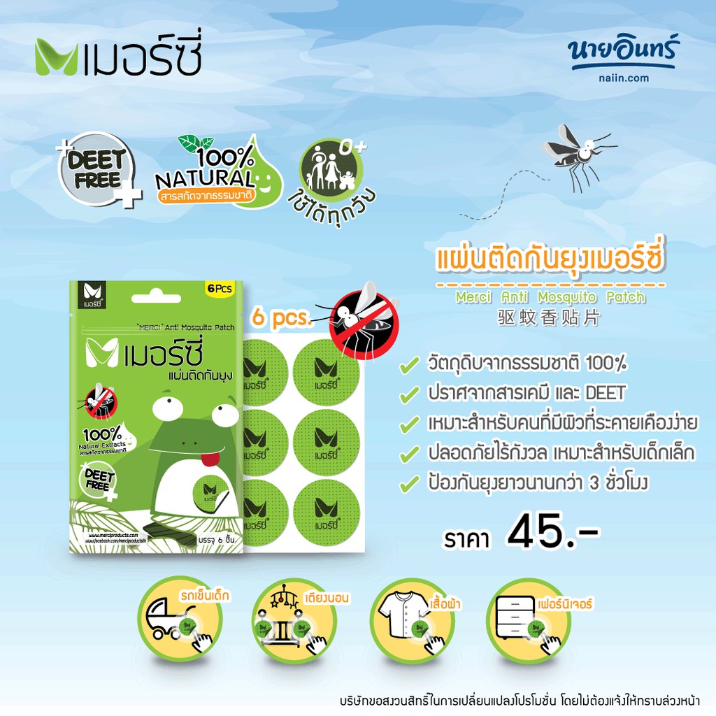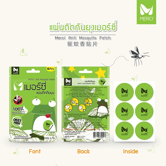 แผ่นแปะกันยุงเมอร์ซี่ สติกเกอร์ สำหรับ กันยุง 6ชิ้น/ซอง