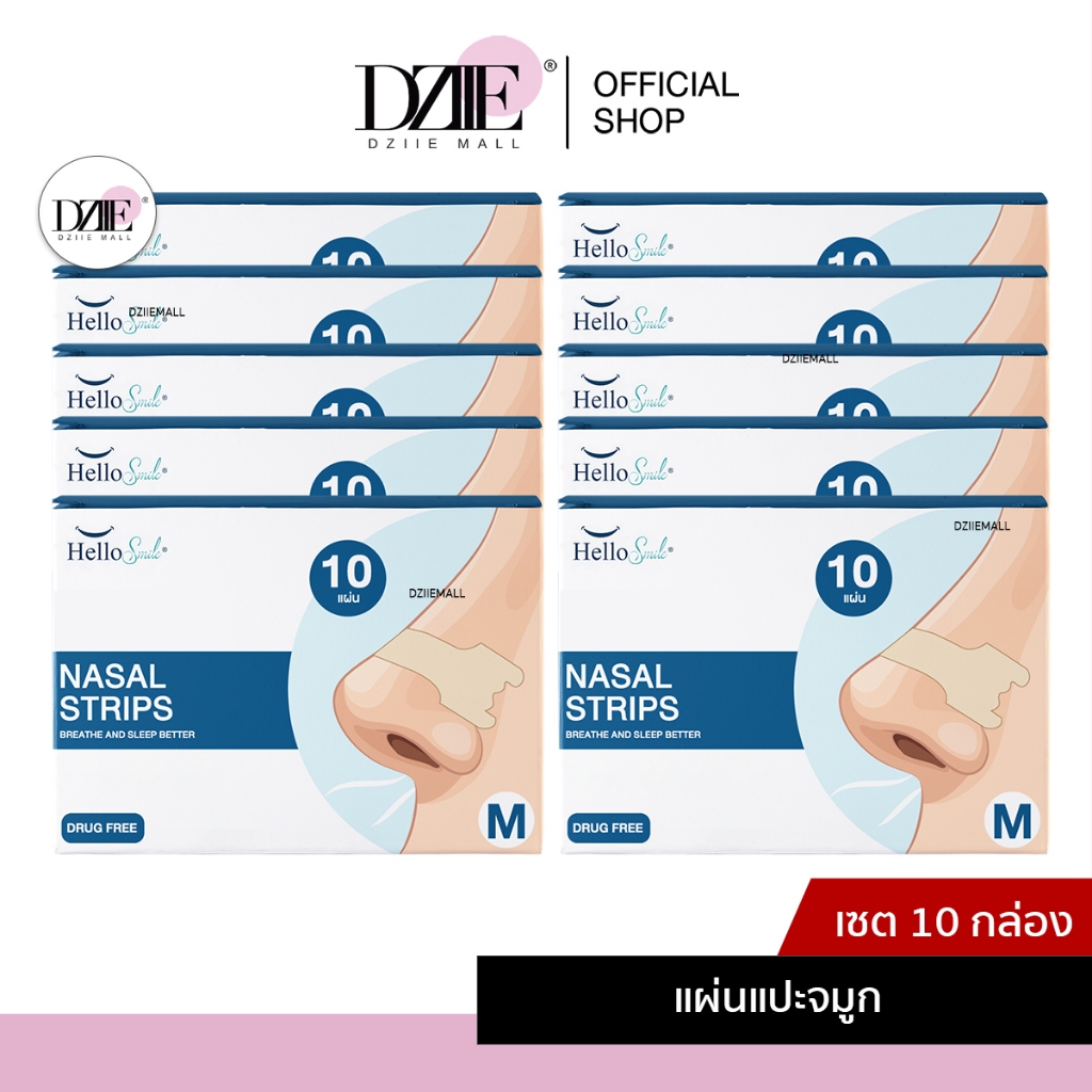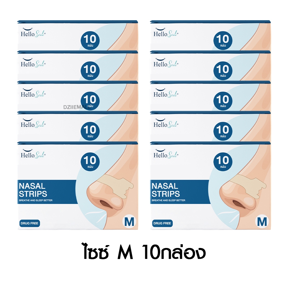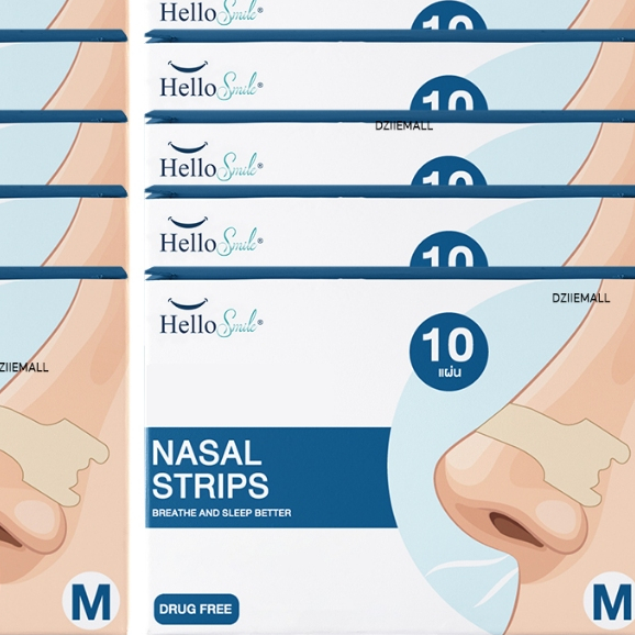 HelloSmile | Nasal Strips แผ่นแปะจมูก SIZE M ยกแพ็ค10กล่อง