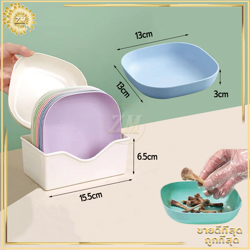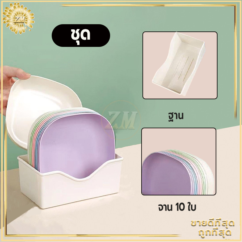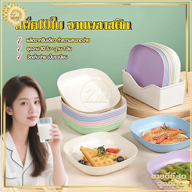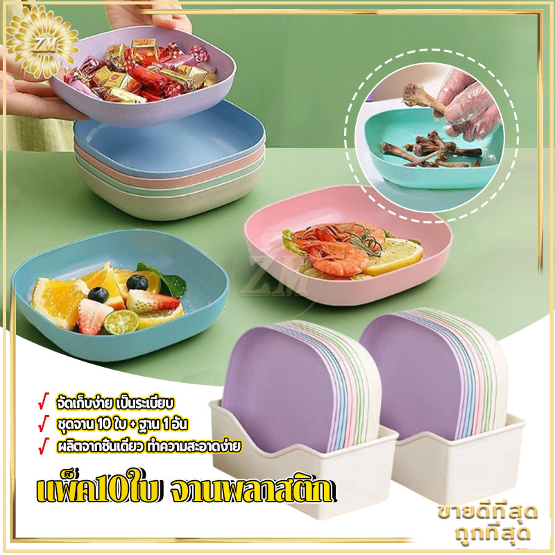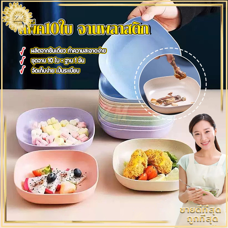 แพ็ค10ใบ จานพลาสติก ใบพร้อมฐาน จานพลาสติกคละสี จานใส่อาหาร จานฟางข้าวสา ชุดจานพลาสติก จานใส่ขนม สไตล์มินิมอลเครื่องครัว