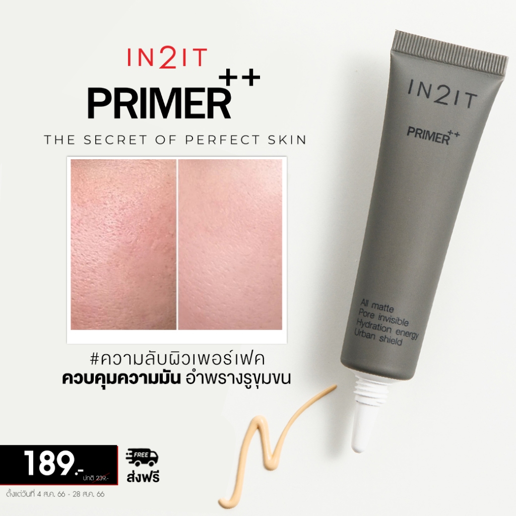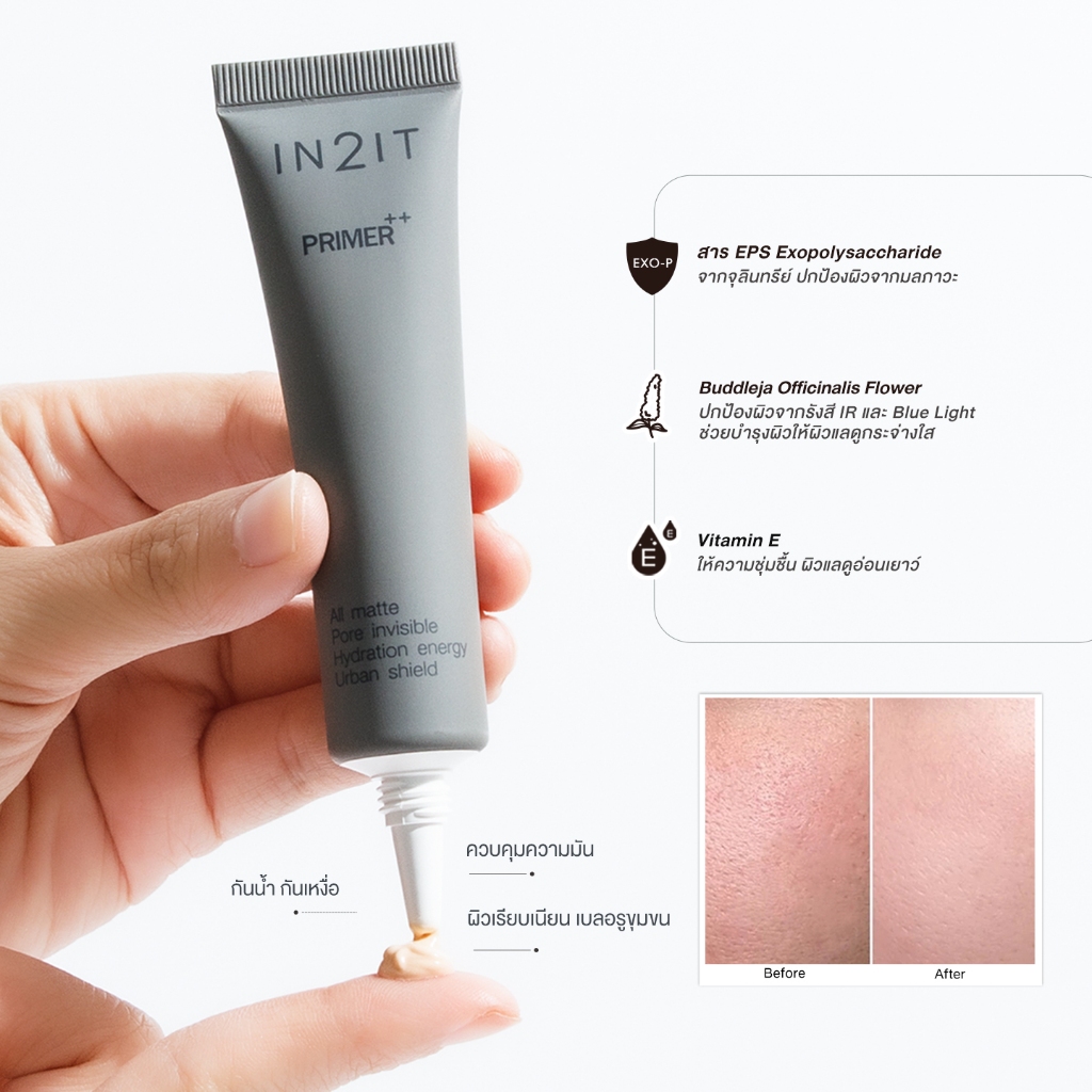 IN2IT PRIMER++ อินทูอิท ไพรเมอร์ เนื้อกำมะหยี่ เบลอรูขุมขน เครื่องสำอางติดทน กันน้ำ กันเหงื่อ 15g.
