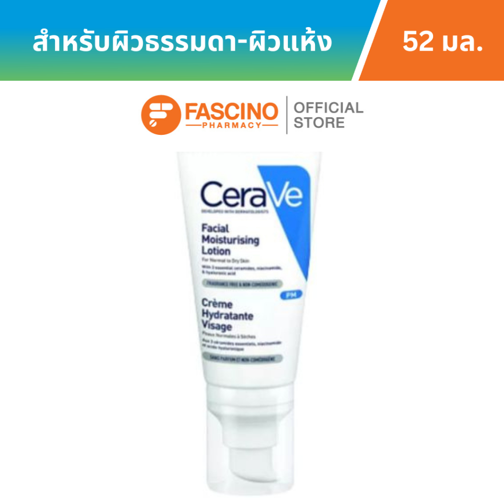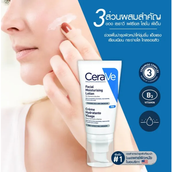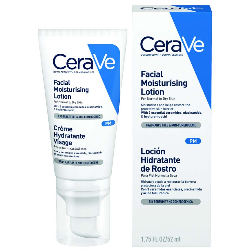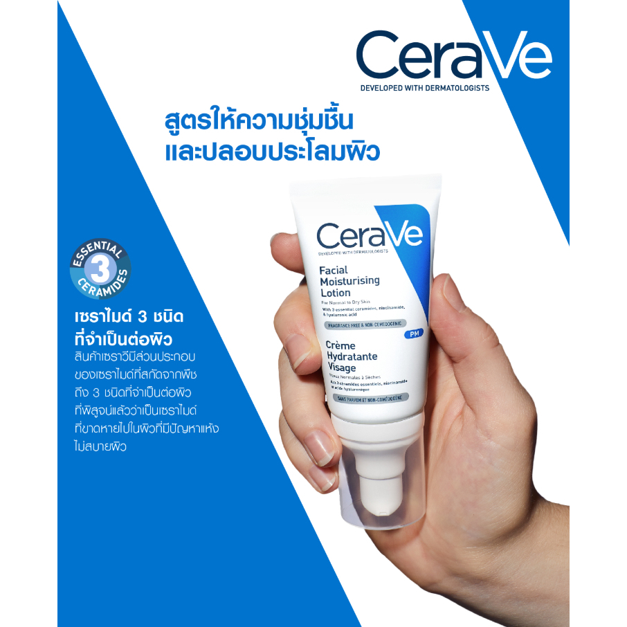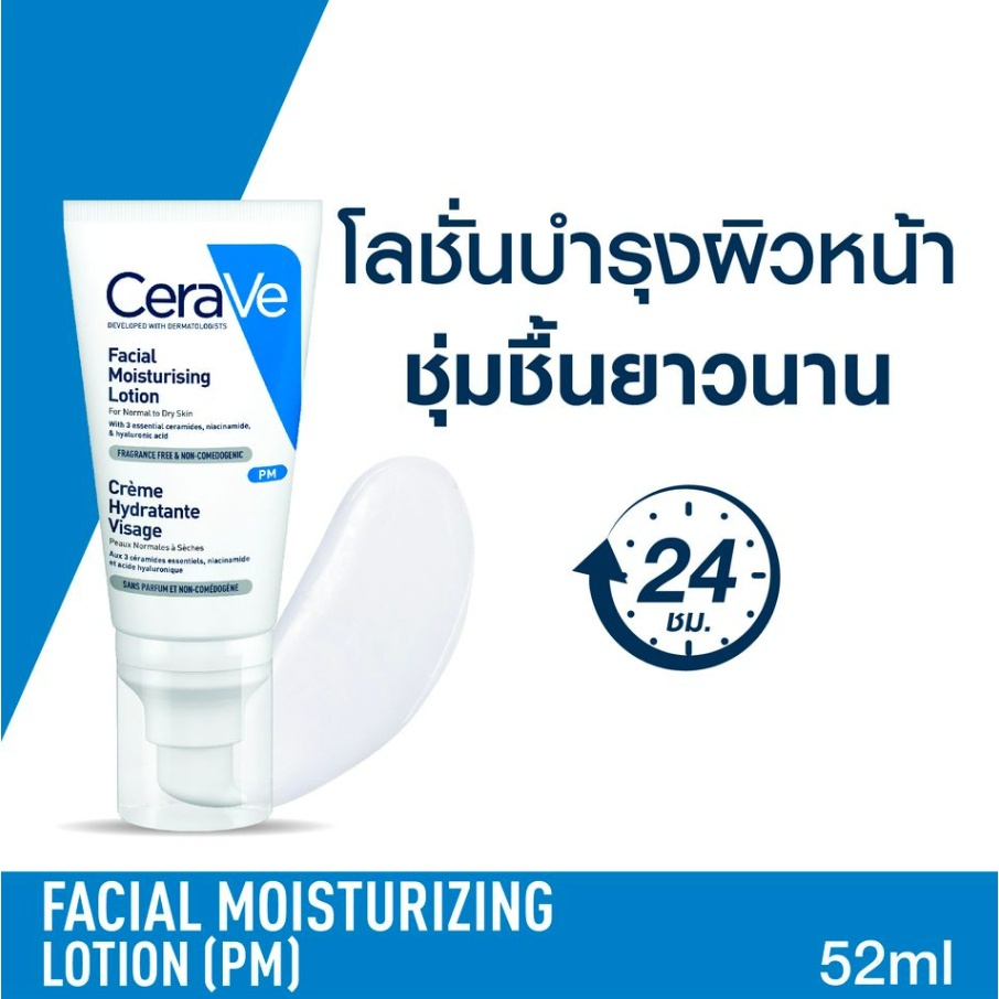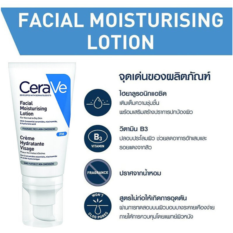 CeraVe Facial Moisturizing Lotion โลชั่นสูตรกลางคืนที่มีไนอาซินาไมด์ สำหรับผิวธรรมดา-ผิวแห้ง (52 มล.)