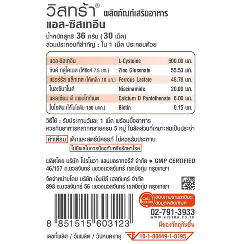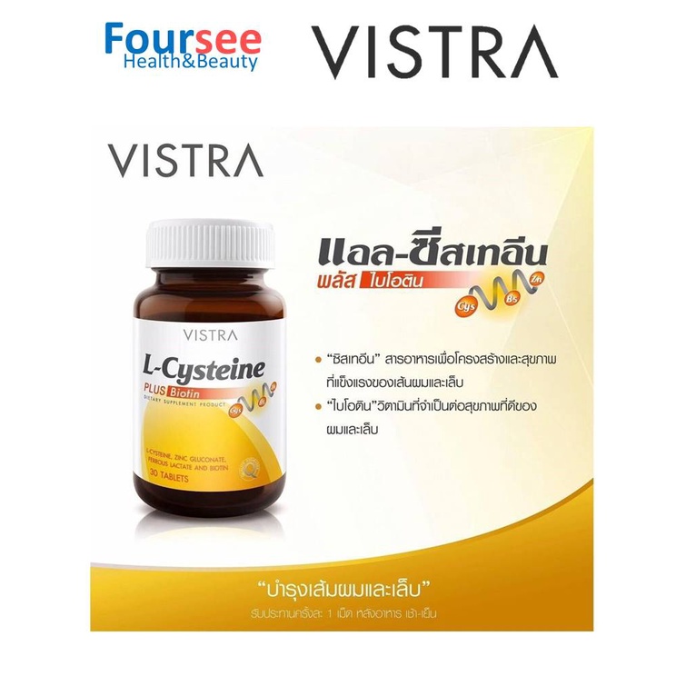 VISTRA L-cysteine plus Biotin 30'S วิสทร้า แอล-ซีสเทอีน พลัส ไบโอติน บำรุงผม