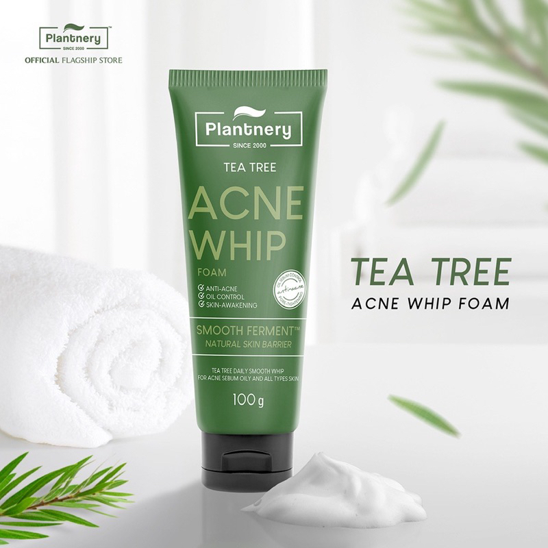 ถุก❗️แท้❗️ Plantnery Tea Tree Acne Whip Foam 100 g โฟมล้างหน้า ทีทรี เนื้อวิบเนียนนุ่ม สำหรับผิวที่มีปัญหาสิว ผิวมัน