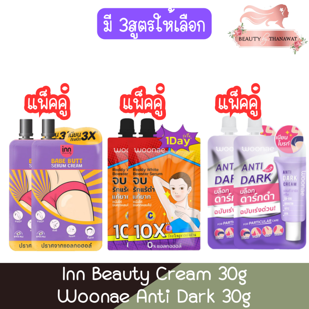(แพ็คคู่) Inn Beauty Cream 30g Woonae Anti Dark 30g. อินน์ บิวตี้ ครีม 30กรัม.วูเน่ แอนตี้ ดาร์ก 30กรัม