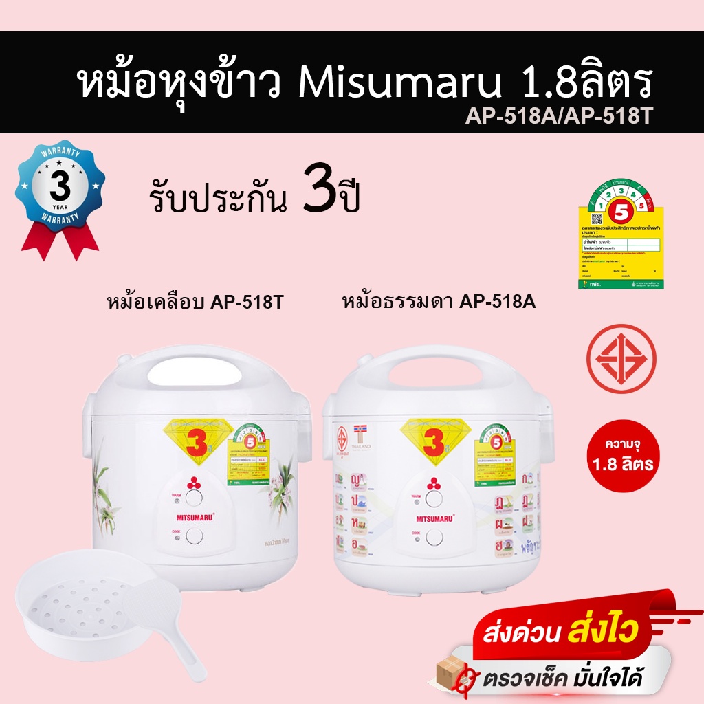 หม้อหุงข้าว Misumaru อุ่นทิพย์ ขนาด1.8ลิตร รุ่น AP-518A/AP-518T รับประกัน3ปี