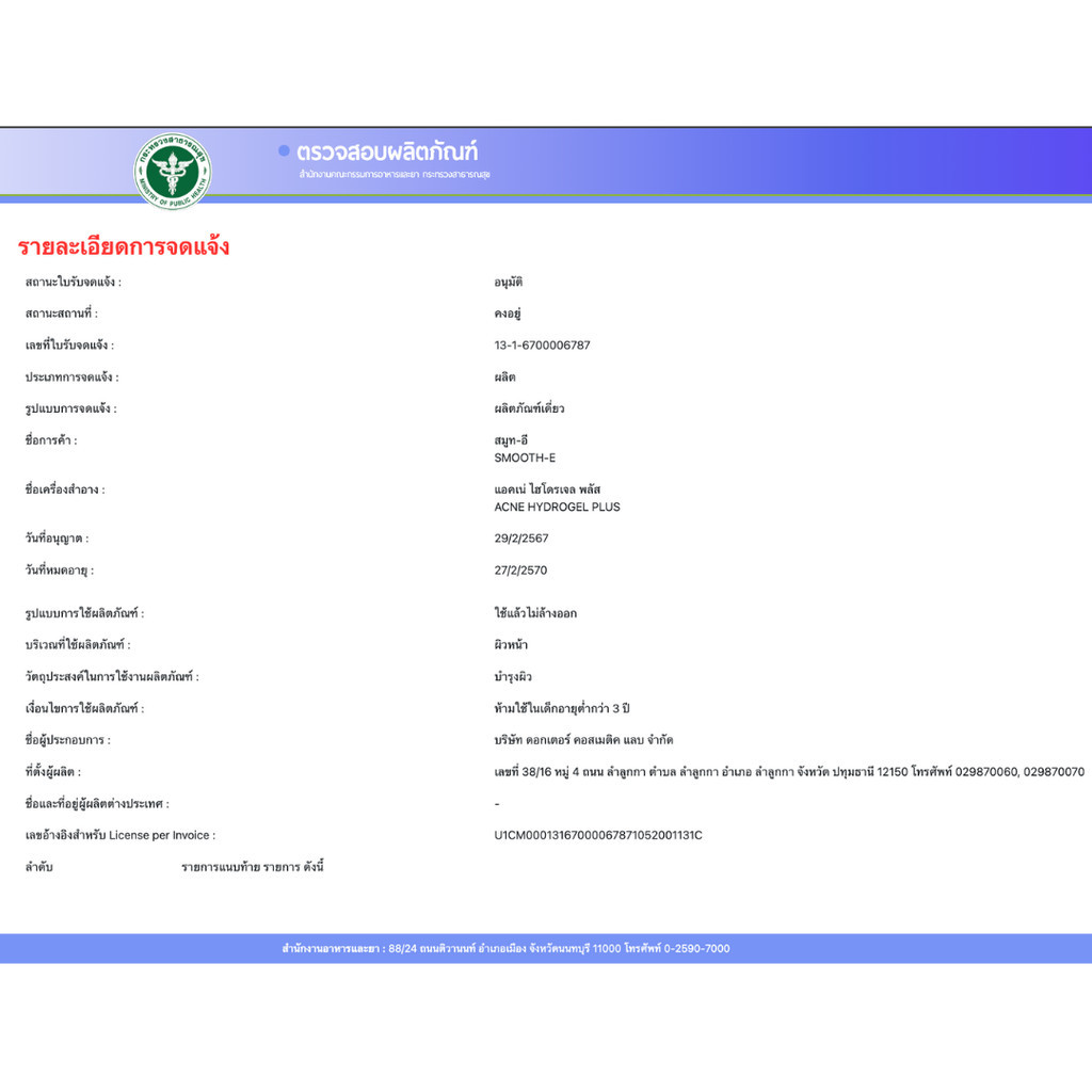 Smooth E Acne Hydrogel Plus สมูทอี แอคแน่ ไฮโดรเจล พลัส ซอง ขนาด 5 กรัม [PC]