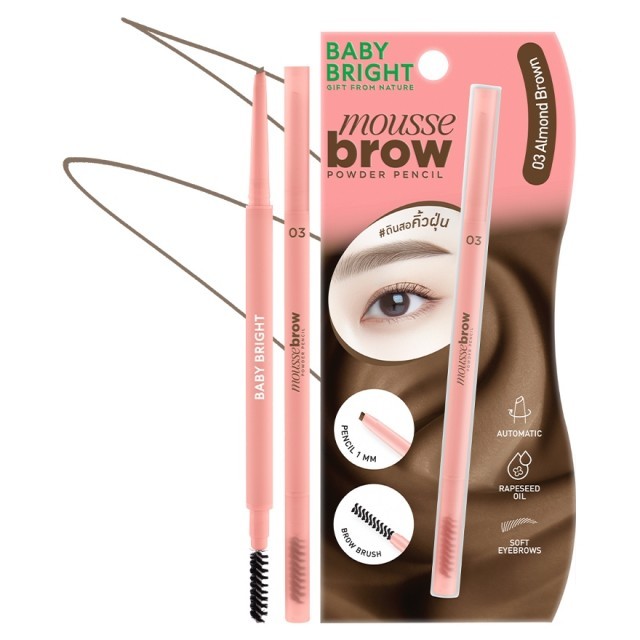 Baby Bright ดินสอเขียนคิ้ว【มูสบราว】หัวแบน หัวเล็ก Baby Bright Mousse Brow Powder Pencil 0.06g