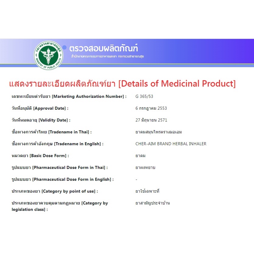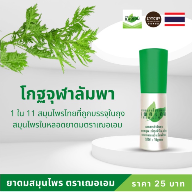 Cheraim Herbal Inhaler ยาดม สมุนไพร เฌอเอม สมุนไพรหอม สดชื่น ขนาด 1 กรัม จำนวน 1 หลอด 10158