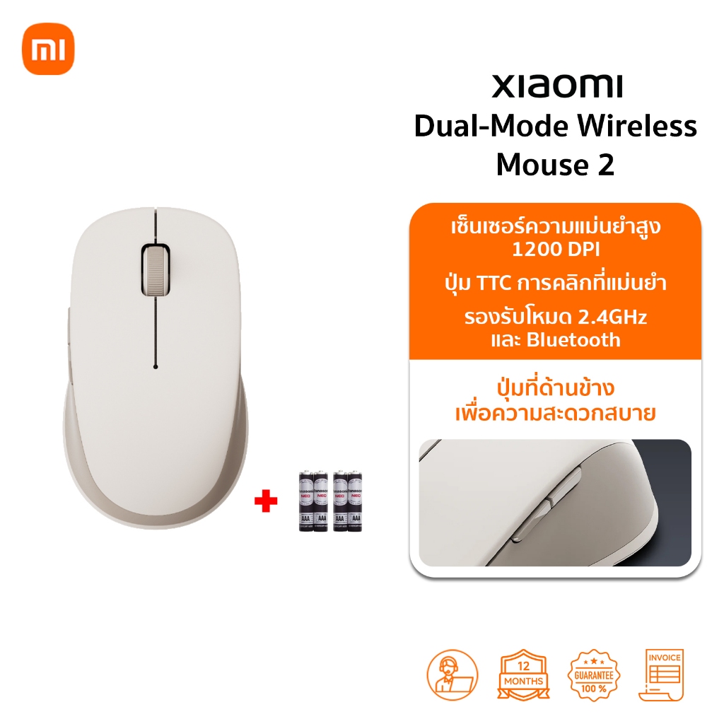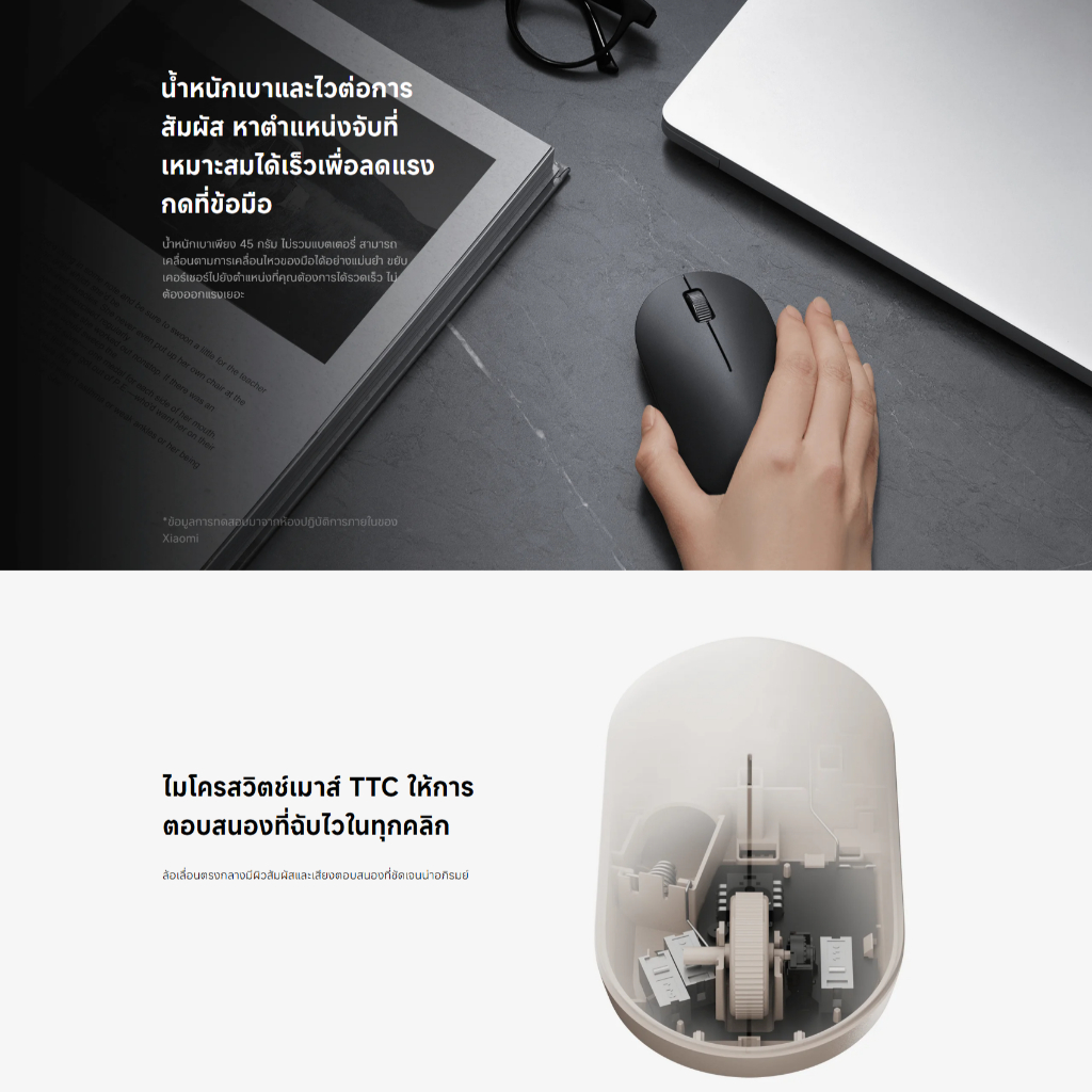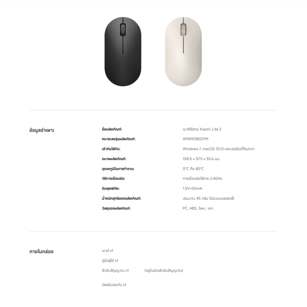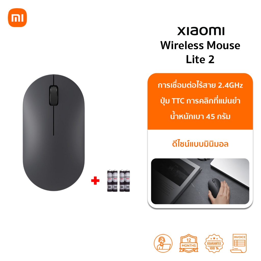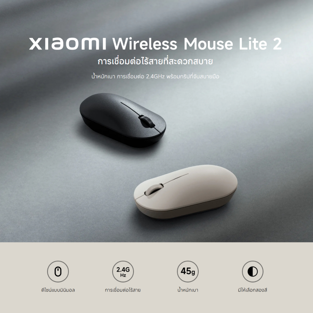 Xiaomi Wireless Mouse Lite 2 เมาส์ เมาส์ไร้สาย I การเชื่อมต่อ 2.4GHz | เพียง 45g | รับประกัน 1ปี