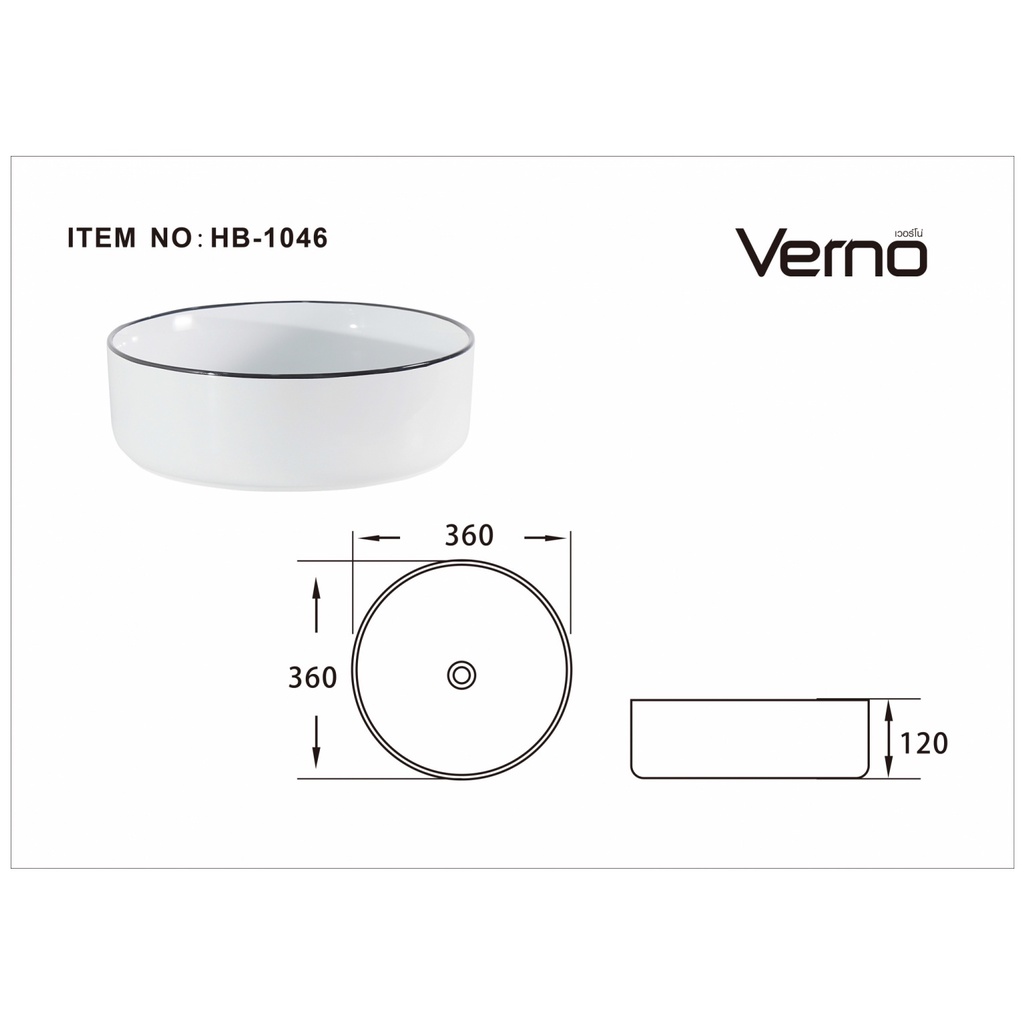Verno อ่างล้างหน้าวางบนเคาน์เตอร์ก๊อกนอกอ่าง **ไม่รวมก๊อกน้ำ** รุ่น เมลโล่ VN-HB-1046 สีขาว