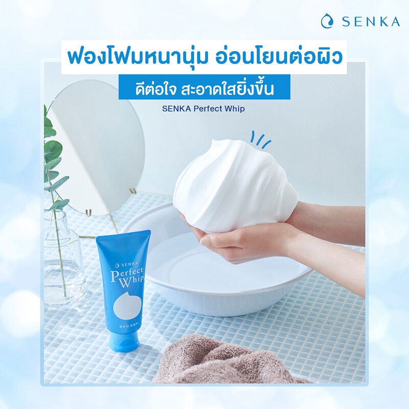 โฟมล้างหน้า เซนกะ วิปโฟม สูตรดั่งเดิม หลอดฟ้า Senka Perfect Whip Foam (120g.) ฉลากไทย