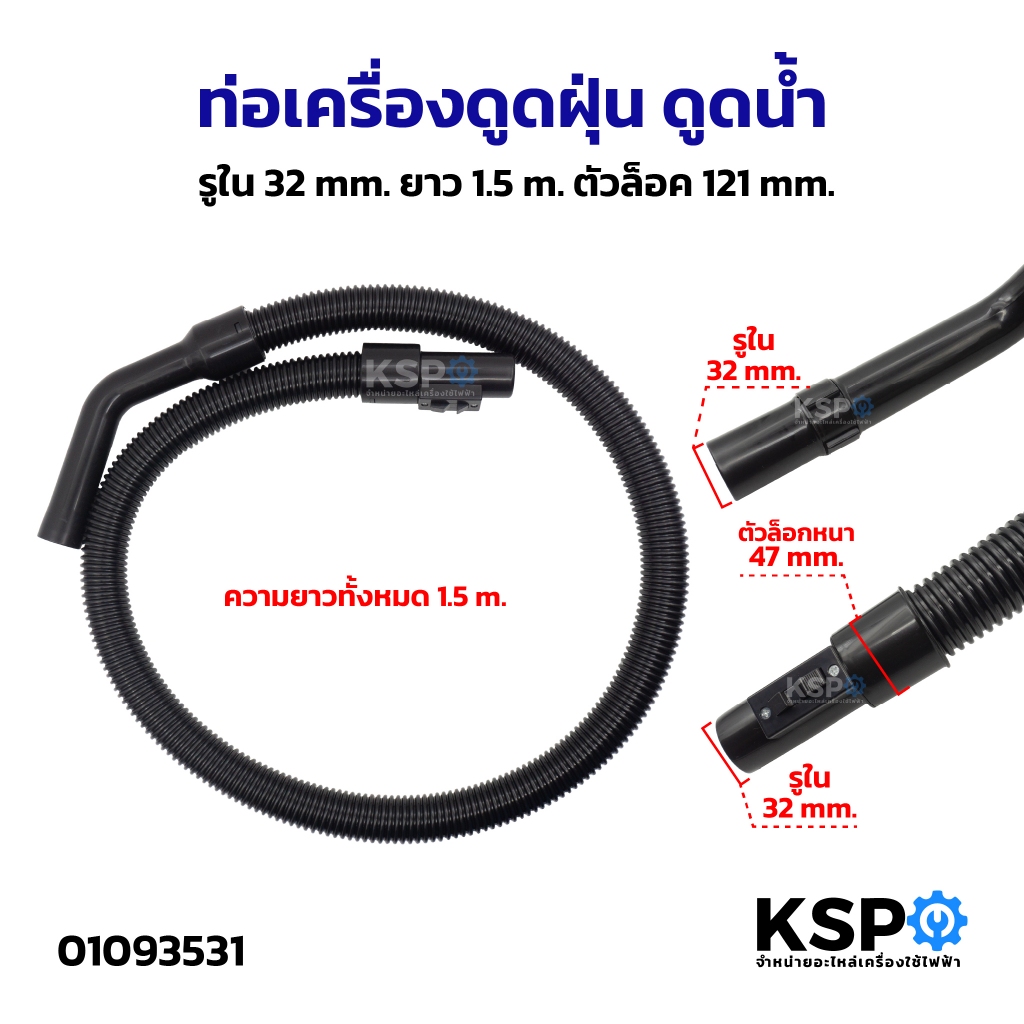 ท่อเครื่องดูดฝุ่น รูใน 32mm ยาว1.5m ตัวล็อค 47mm อะไหล่เสริมเครื่องดูดฝุ่น