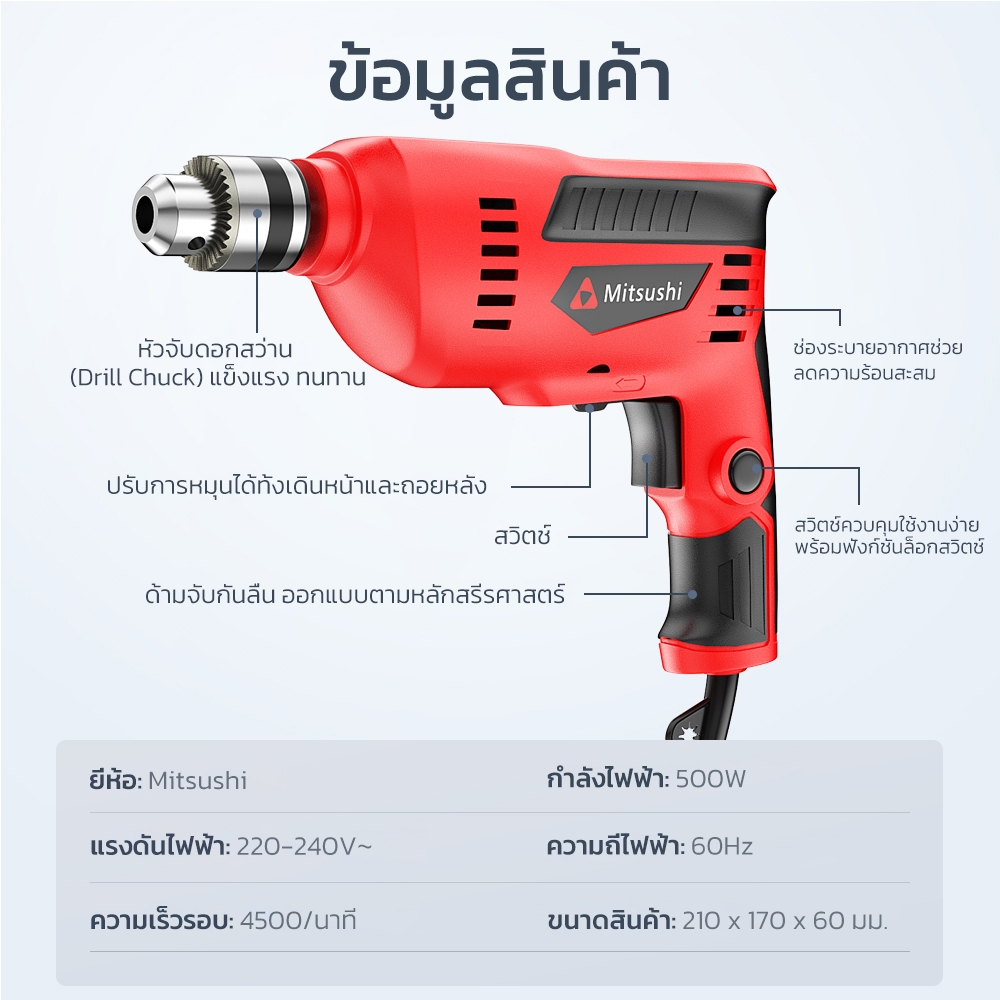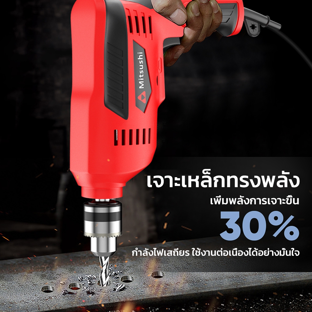 Mitsushi สว่านไฟฟ้า 500W สว่านกระแทก ปรับรอบซ้าย-ขวา สว่าน เจาะปูน เหล็ก ไม้ได้ แรงดี