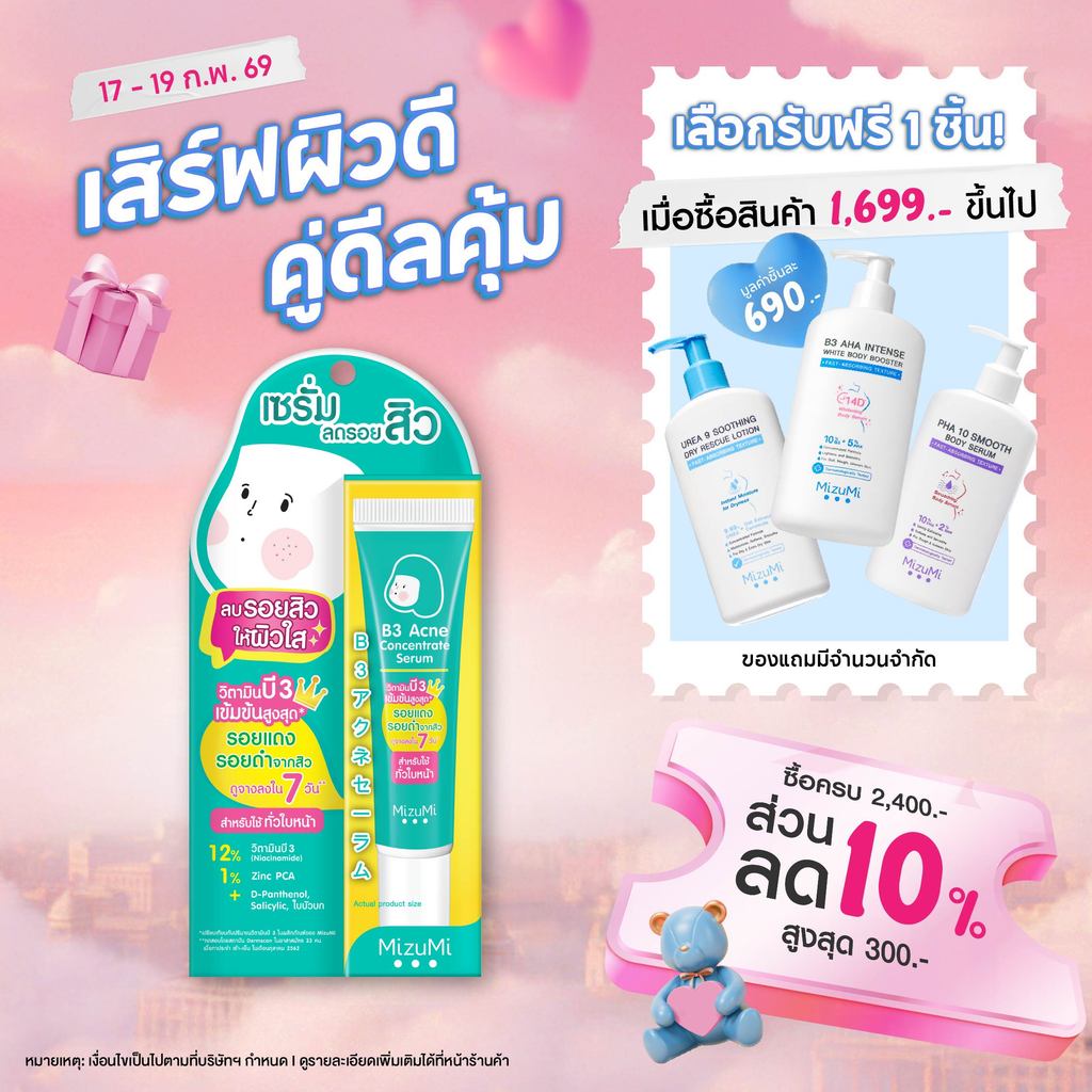 MizuMi B3 Acne Concentrate Serum(13g x 1 หลอด) เซรัมลดรอยสิว ลดรอยแดง ลดรอยดำ ผิวเป็นสิว ผิวแพ้ง่าย