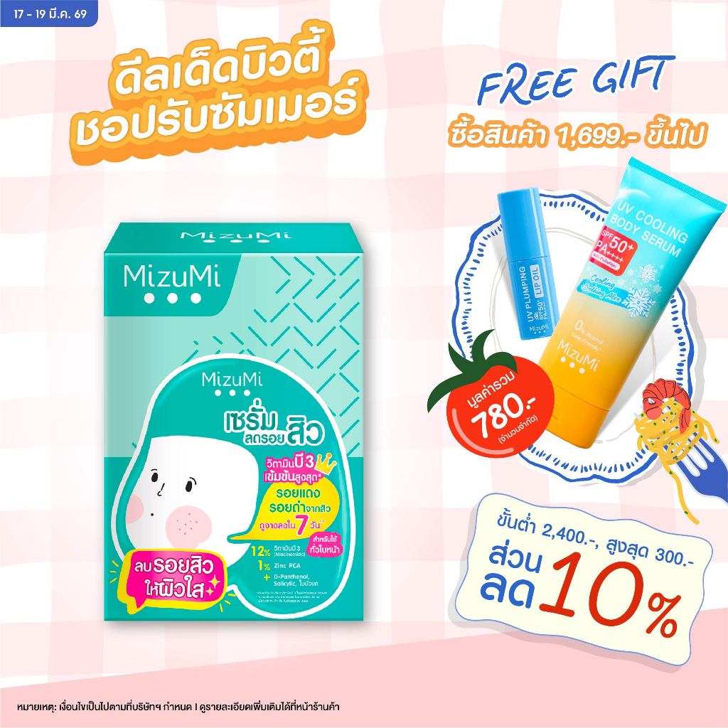 MizuMi B3 Acne Concentrate Serum (6g x 6ซอง)เซรัมลดรอยสิว ลดรอยแดง ลดรอยดำ ผิวเป็นสิว ผิวแพ้ง่าย