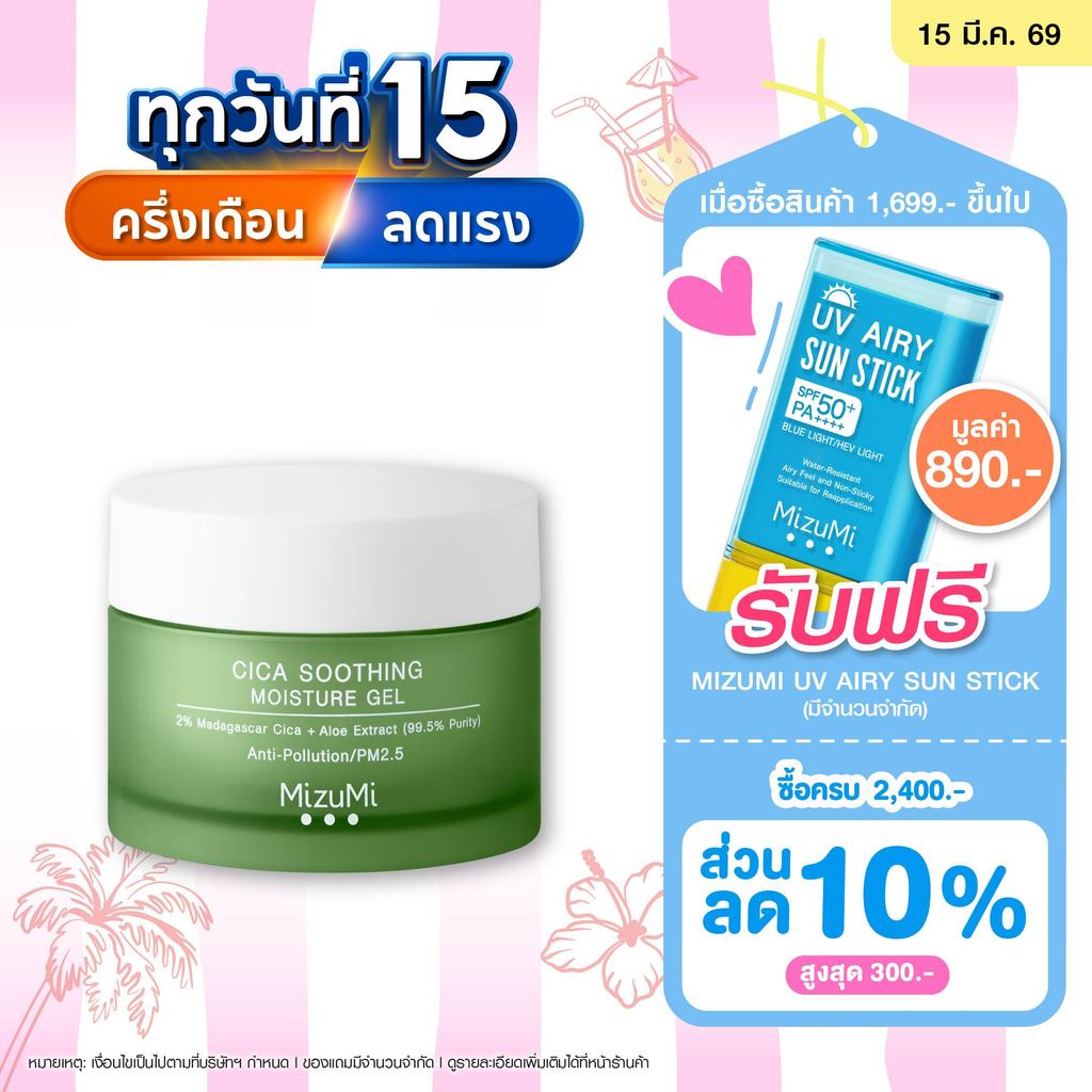 MizuMi Cica Soothing Moisture Gel (45ml) มอยส์เจอร์ไรเซอร์สำหรับผิวมัน เป็นสิวง่าย ซึมไว
