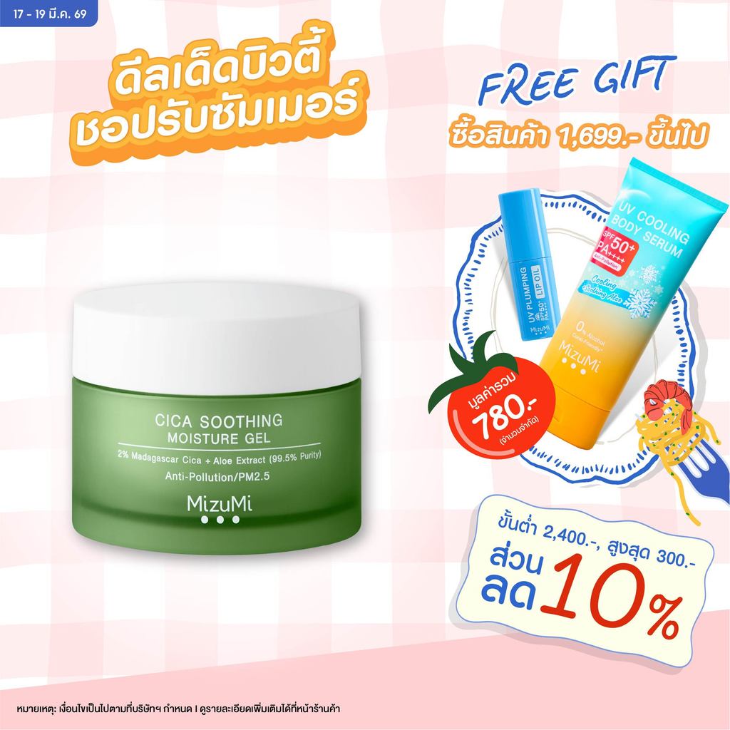 MizuMi Cica Soothing Moisture Gel (45ml) มอยส์เจอร์ไรเซอร์สำหรับผิวมัน เป็นสิวง่าย ซึมไว