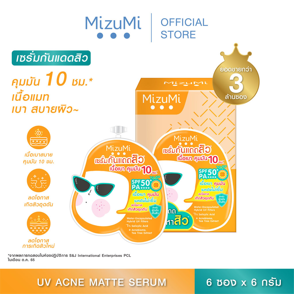 MizuMi UV Acne Matte Serum (6g x 6 ซอง) เซรั่มกันแดด เนื้อเบาสบาย คุมมัน เมคอัพไม่เยิ้ม ลดโอกาสการเกิดสิว